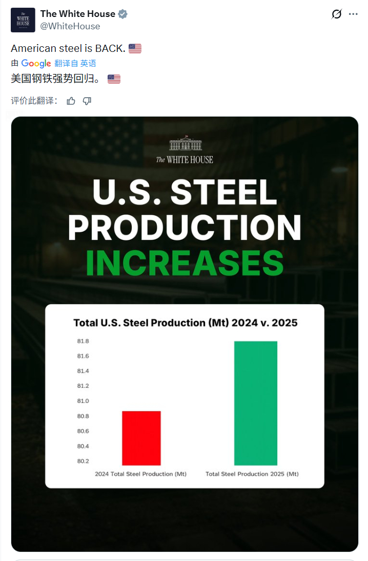白宫真是特么出人才,原来图还能这么画呢:阿川上台前后,2024和2025年美国钢