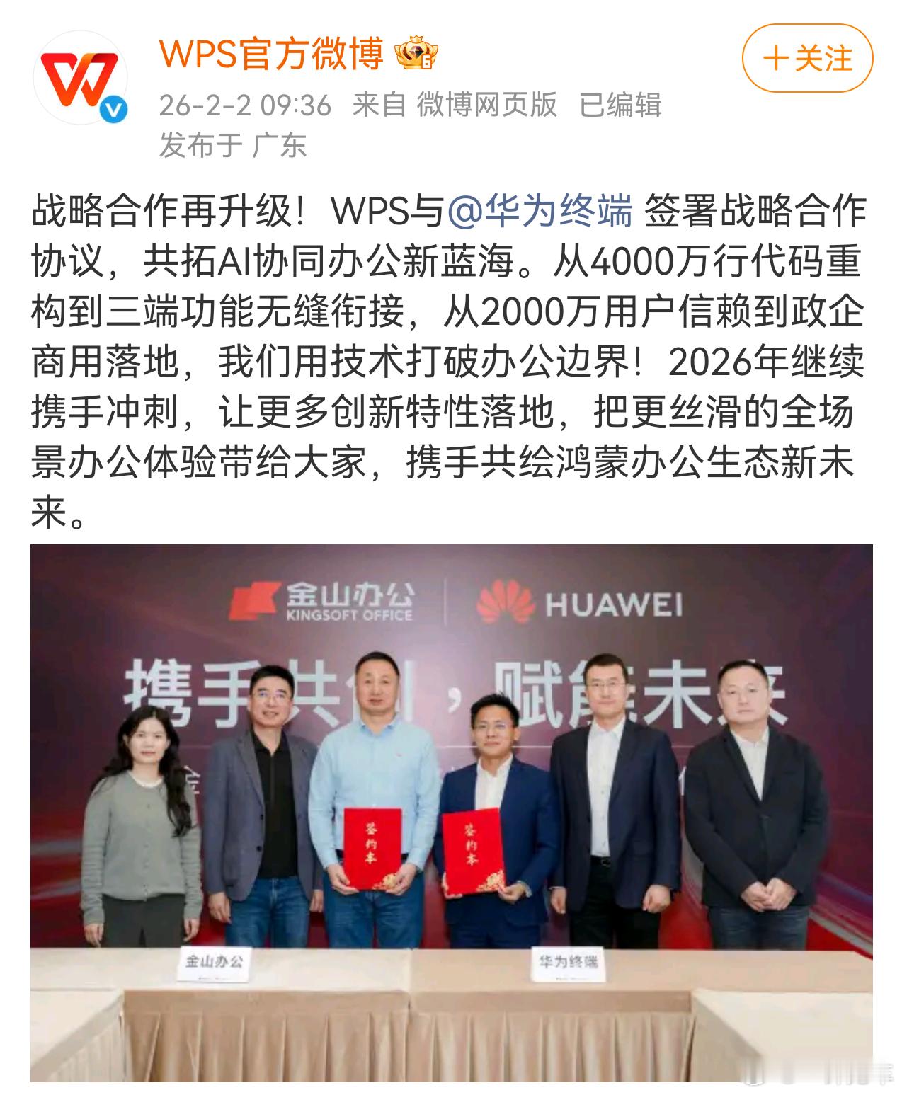 WPS与华为终端战略合作再升级。鸿蒙系统有海量的合作伙伴,大家一起支持自主可控的操作系统,点赞