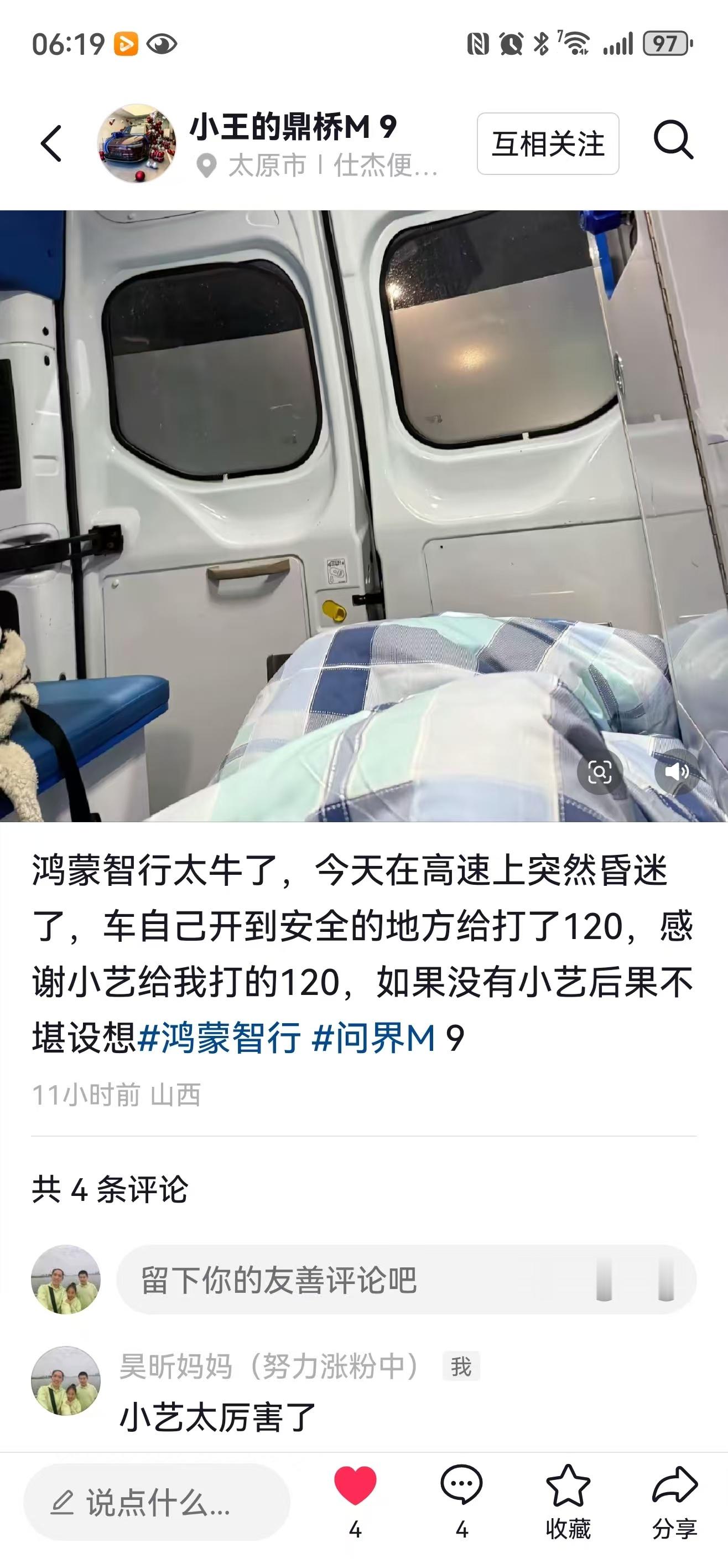 太牛逼了,有网友在高速开车的时候心脏不舒服昏迷,醒来以后在医院,原来是自己的问界