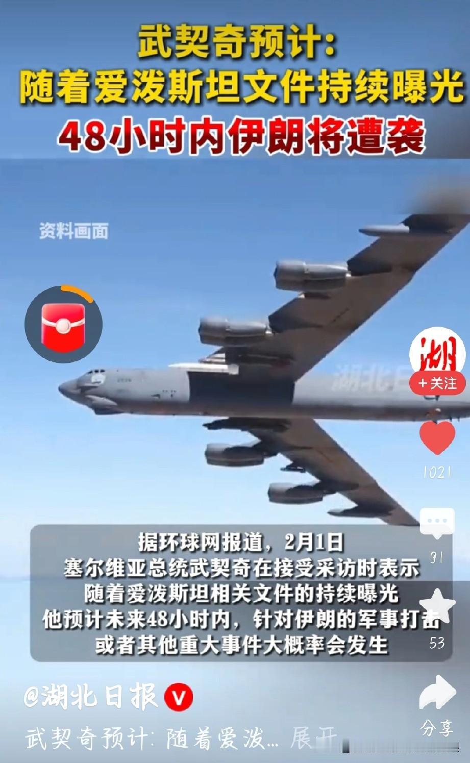 武契奇这话一出,中东这局势直接拉满了!他说未来48小时伊朗大概率遭军事打击,还点出美国可能是想靠打仗转移爱泼斯坦案的注意力,这操作太眼熟了。现在美国在波斯湾摆了不少军舰,连打击方案都备好了,伊朗这边也没怂,导弹产量翻番,还列装了新无人机,全国上下拧成一股绳备战。哈梅内伊直接放话,美国敢动手就是地区全面战争,伊朗的反舰武器可不是摆设,美军在海湾的基地都在射程内。一边是步步紧逼,一边是强硬回击,波斯湾的火药味浓得散不开,这48小时怕是要牵动全世界的心,真怕擦枪走火酿成大祸!武契奇预计伊朗将在48小时内遭袭 美国对伊朗开战 美国要打伊朗 图片截图于网络