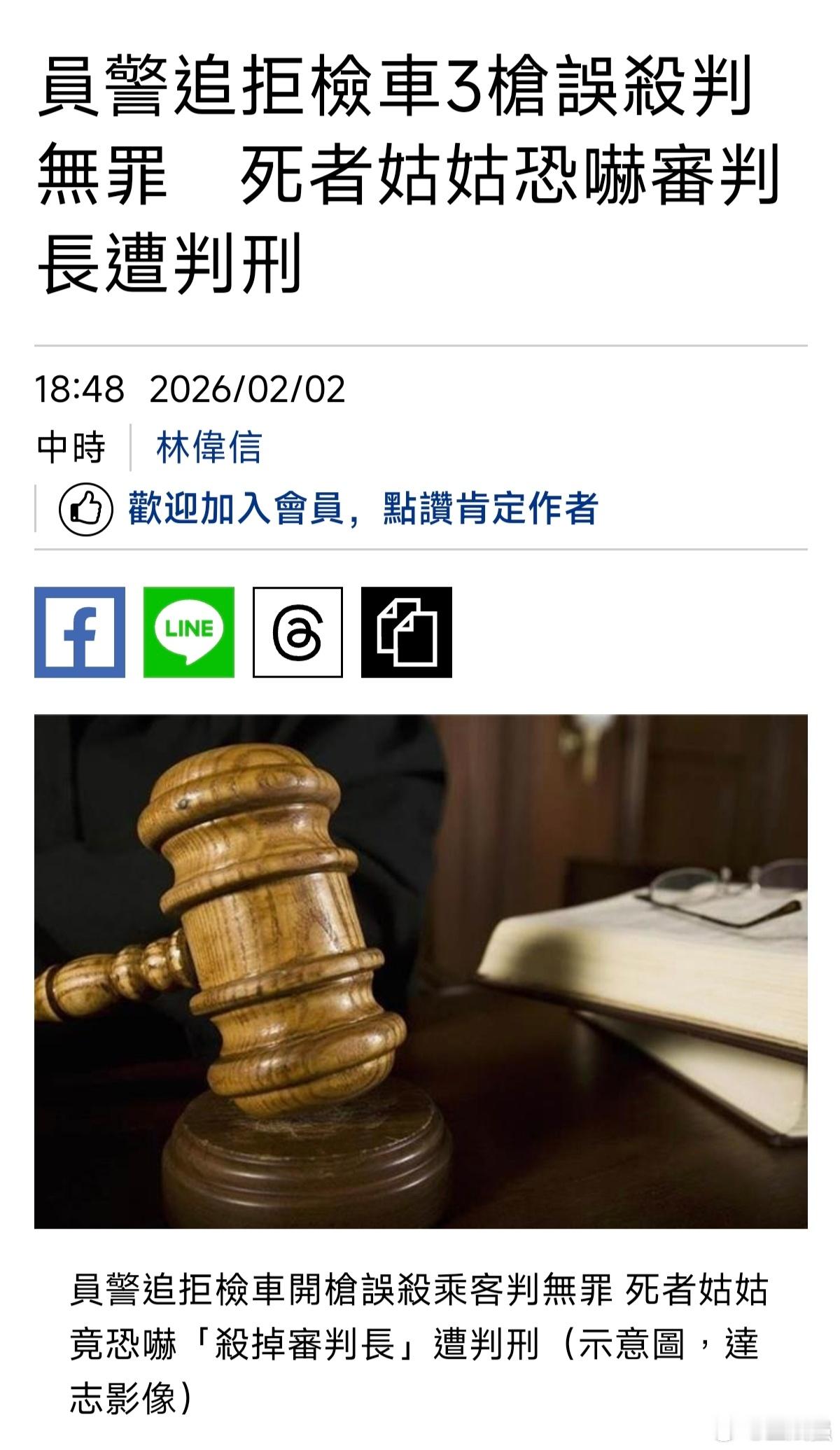 台湾 【台警察追拒检车3枪误杀判无罪,死者姑姑相反却因“恐吓审判长”遭判刑】