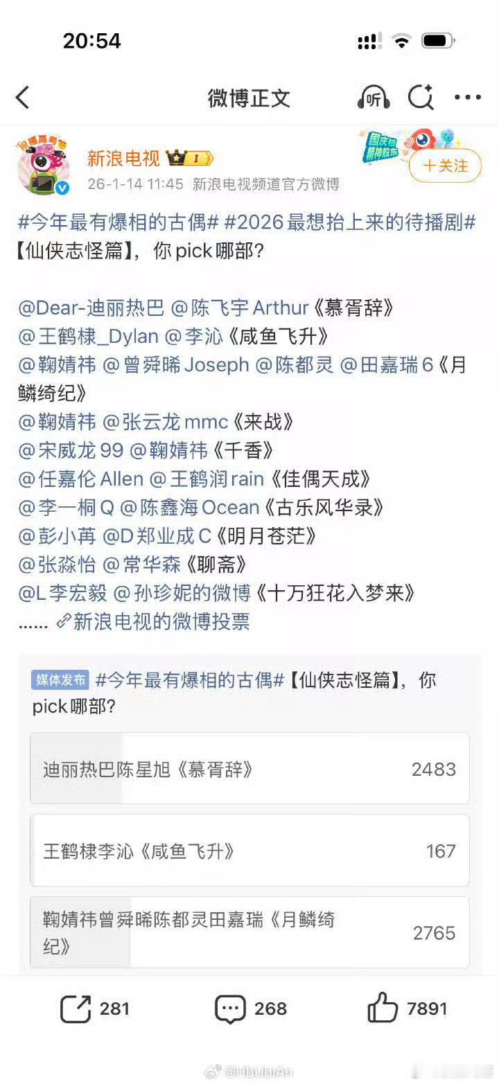 肖战微博之夜第七波阵容微博之夜第7波官宣,肖战一个小时点赞破110万,热一点