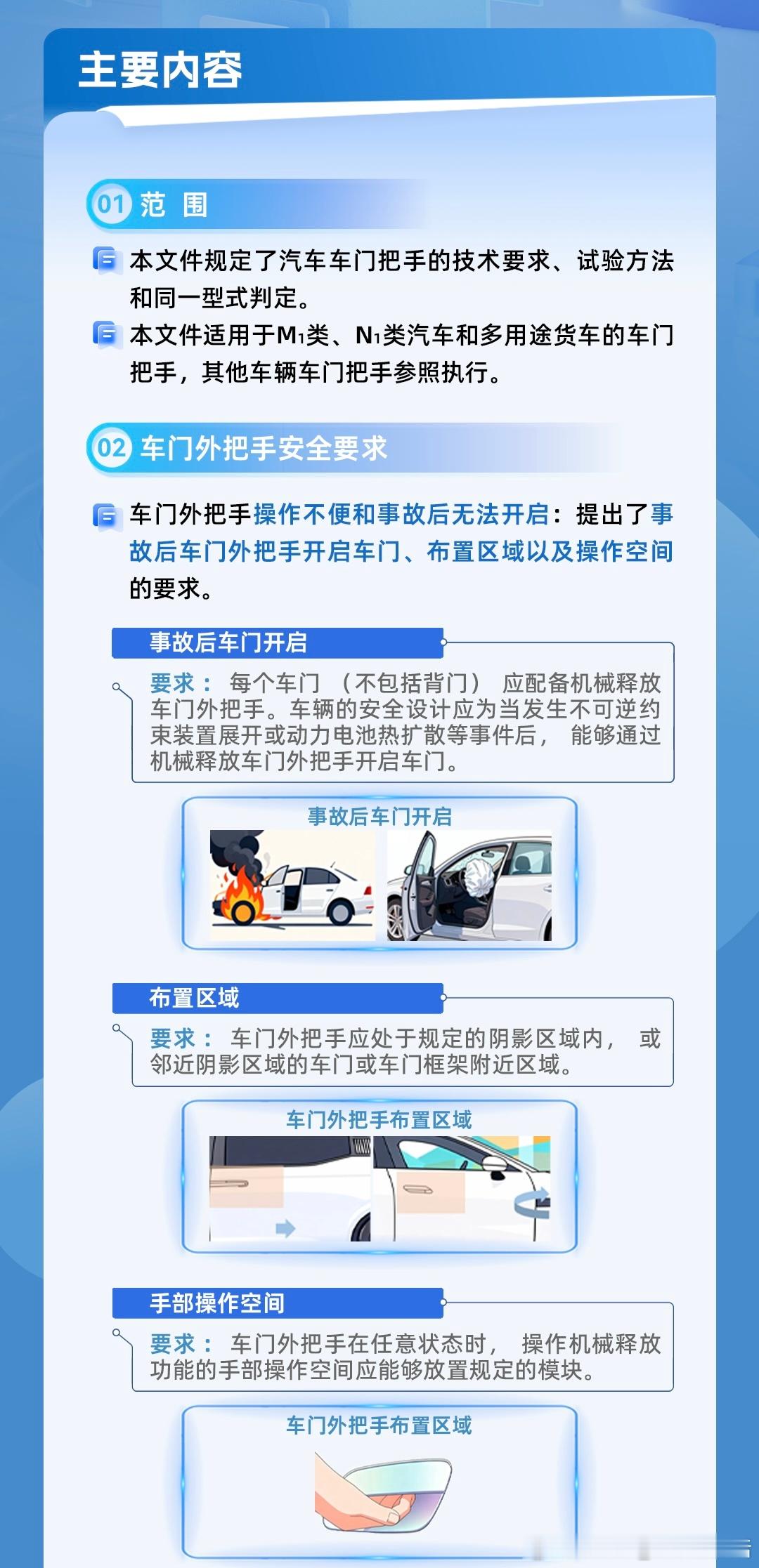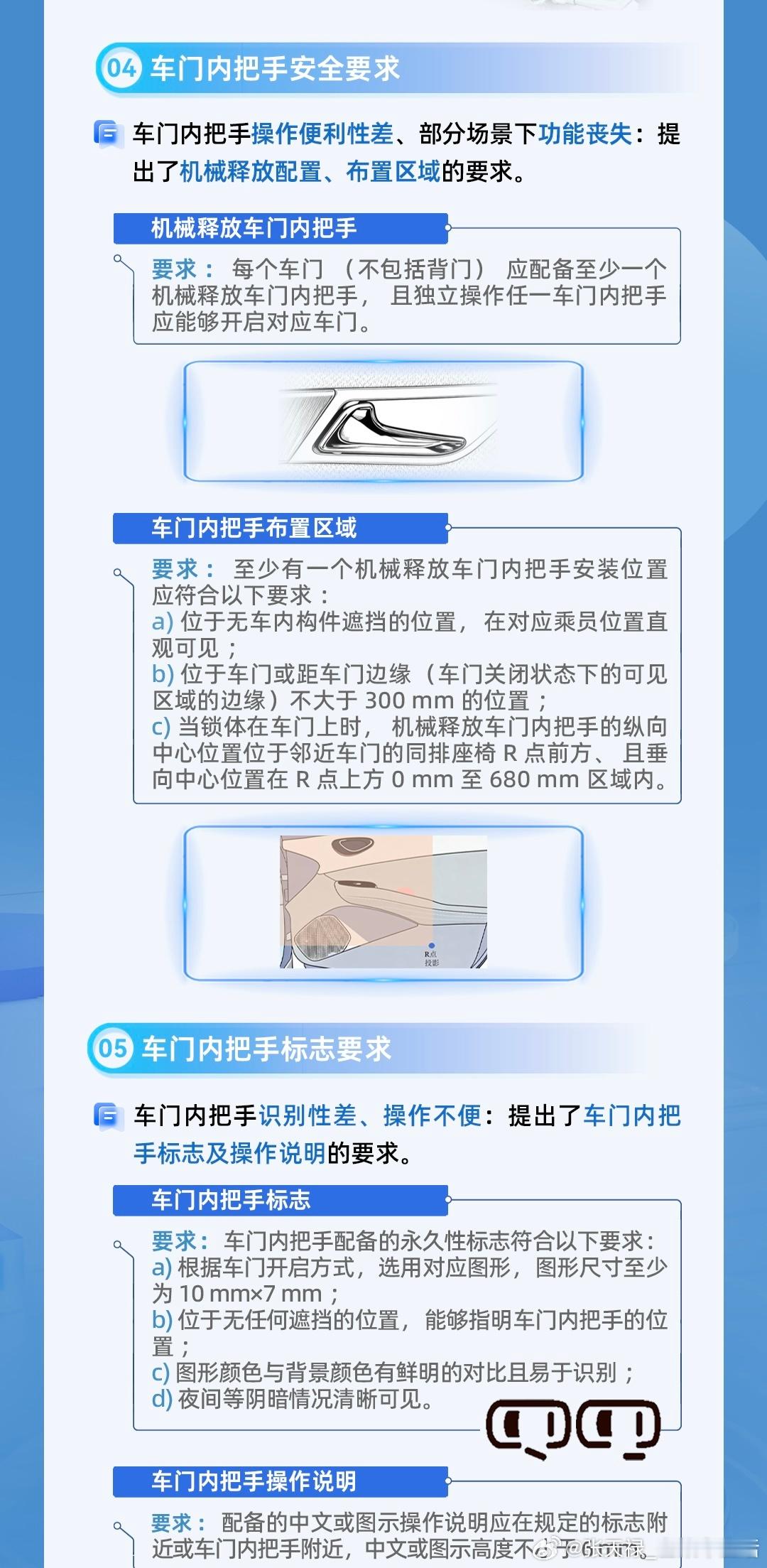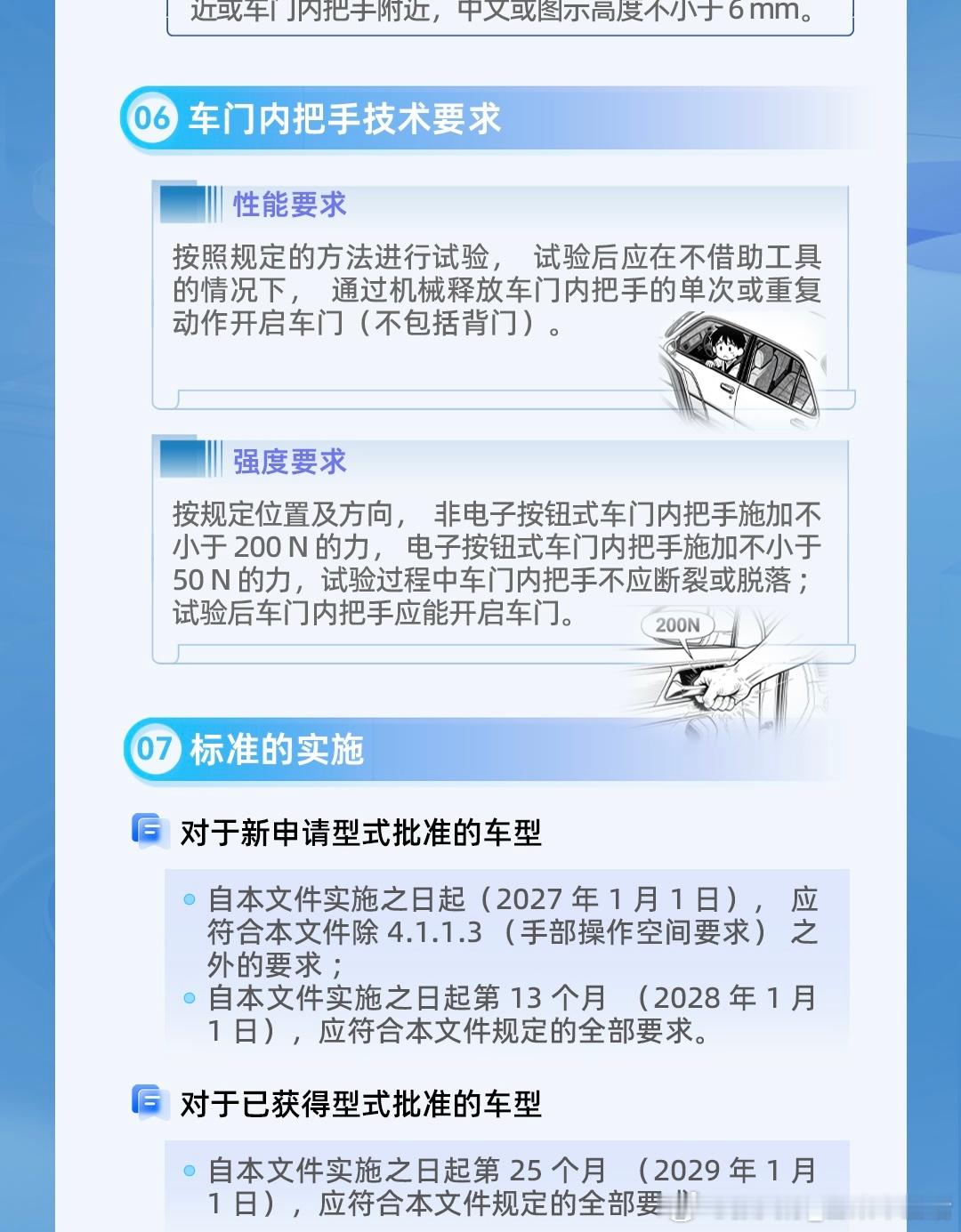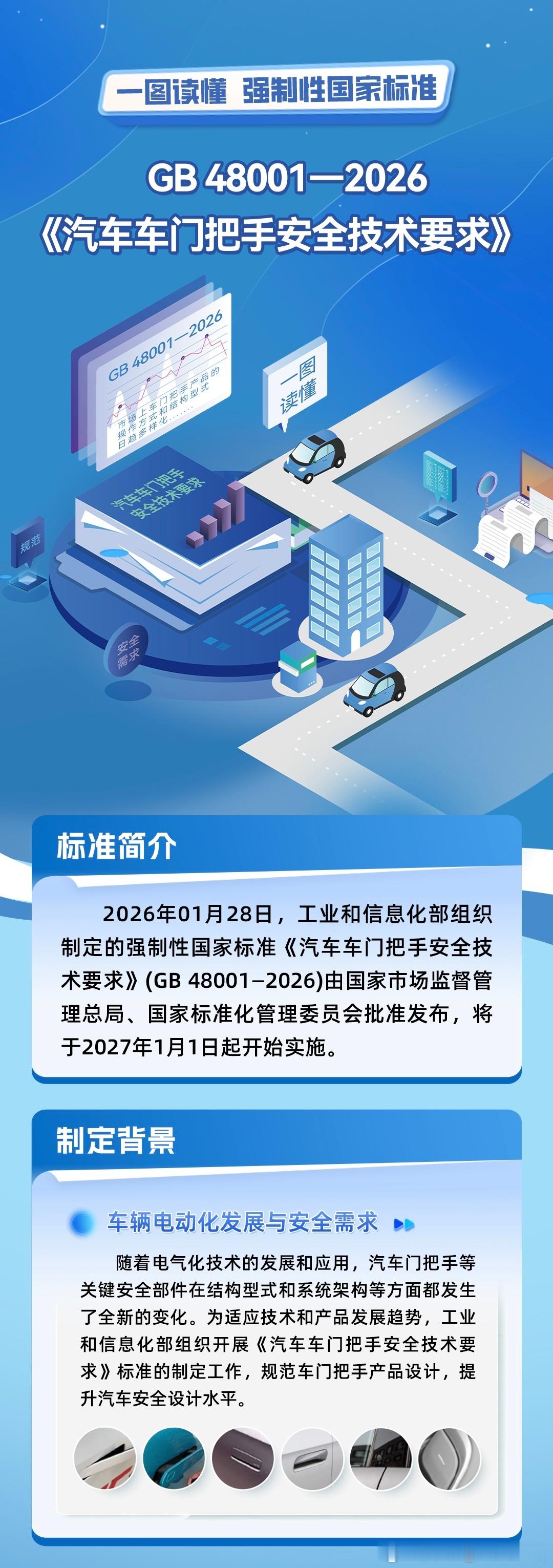 汽车门把手强制性国标发布《汽车车门把手安全技术要求》(GB 48001-2026)将于2027年1月1日起开始实施。