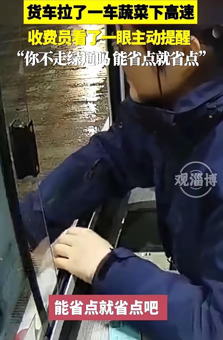 34块钱,收了,天经地义。 流程一走,谁也挑不出半点毛病。 但杭州那个收费员,偏偏多问了一句。 就这一句,把一件“公事”,瞬间变成了一件“人事儿”。 货车司机拉着一车的青菜萝卜,风尘仆仆,到口了,准备掏钱。 她但凡“专业”一点,或者说,冷漠一点,这钱就过去了。 可她探出头,看着满车的蔬菜,问:师傅,你不走绿通吗? 大哥一脸懵,说不知道啊。 接下来那句话,真的,一下子就戳到我了。 收费员隔着窗口轻声回了一句,能省点就省点呗,随后便起身指引司机完成绿通核验的全部流程。她没有因为车流量大就敷衍了事,也没有因为司机不懂政策就按普通车辆直接收费,而是耐心核对车厢内的货物品类,确认青菜萝卜都在国家鲜活农产品运输目录内,又检查车辆装载量符合绿通减免的标准,全程动作麻利,语气平和,没有丝毫的不耐烦。 这位货车师傅常年跑短途生鲜运输,天不亮就去菜地装货,赶在早市前把蔬菜送到批发市场,一车货的利润本就微薄,除去油费、车辆损耗,到手的收入只够维持家庭日常开支。他把所有精力都放在赶路和装卸货上,根本没有时间去梳理高速通行的优惠政策,更不知道自己运输的新鲜蔬菜,完全符合全国统一的绿通免费通行条件。在他的认知里,上高速交通行费是理所应当的事,从没想过还有减免的机会,手里攥着的34块钱,是他跑这一趟能省下的一顿热饭钱。 高速收费站的窗口岗位,本就讲究通行效率,按章收费、快速抬杆是最稳妥的工作方式,不会出错,也不会增加额外工作量。全国多数收费站的一线工作人员,每天要应对上千辆通行车辆,重复着相同的操作流程,能严格遵守规章制度,就已经完成了本职工作。这位杭州收费员的举动,没有被写入工作考核标准,也没有额外的奖励,她只是看到满车新鲜的果蔬,想到司机奔波的辛苦,下意识地多了一句提醒,这份下意识,是刻在骨子里的善良,也是基层服务者最动人的温度。 2025年交通运输部持续优化绿通政策落地细则,扩大鲜活农产品认定范围,简化核验流程,目的就是降低生鲜物流成本,保障城乡菜篮子供应稳定。可调研数据显示,超四成基层货车司机对绿通政策的适用范围、核验要求了解不全面,不少人因为信息差,常年多交不必要的通行费,无形中增加了运营成本。一线收费人员的主动提醒、现场指导,成了打通政策落地最后一公里的关键,一句简单的询问,就能帮司机省下真金白银,也让惠民政策真正落到实处。 34块钱数额不大,放在日常消费里只是一笔小额支出,可对风餐露宿的货车司机来说,是实打实的收入结余,是奔波路上的一份暖意。规则是行业运行的底线,而善意是人与人之间的桥梁,按流程收费是职业本分,主动提醒帮扶是人性本心。 平凡的岗位上,从不需要惊天动地的壮举,一句贴心的询问,一次主动的帮扶,就足以温暖一个奔波的人,照亮一段前行的路。这份不刻意的善意,没有华丽的包装,却最能打动人心,也让我们看到,普通人身处岗位,依旧能把规则之外的温情,传递给每一个努力生活的人。 各位读者你们怎么看?欢迎在评论区讨论。