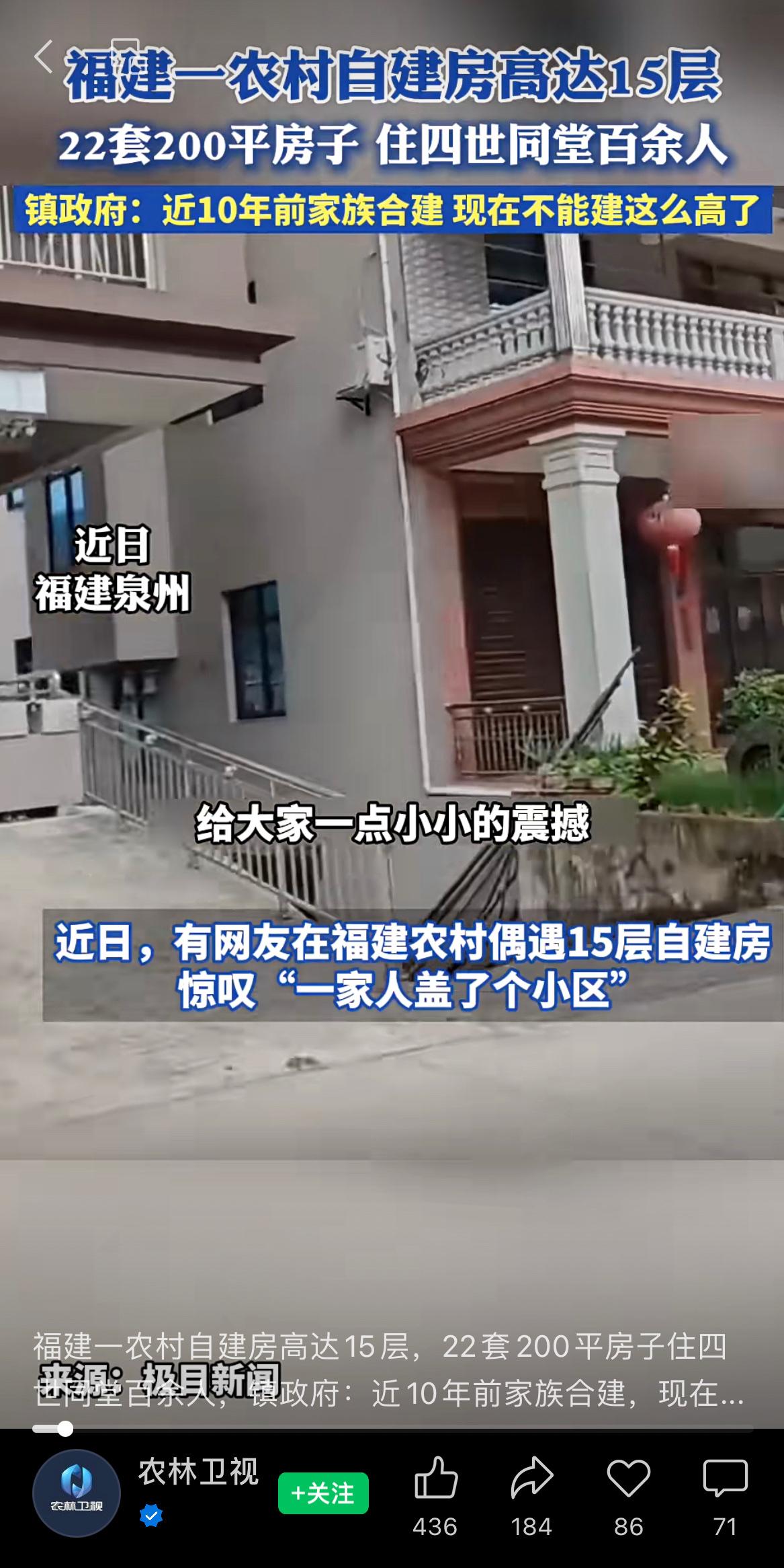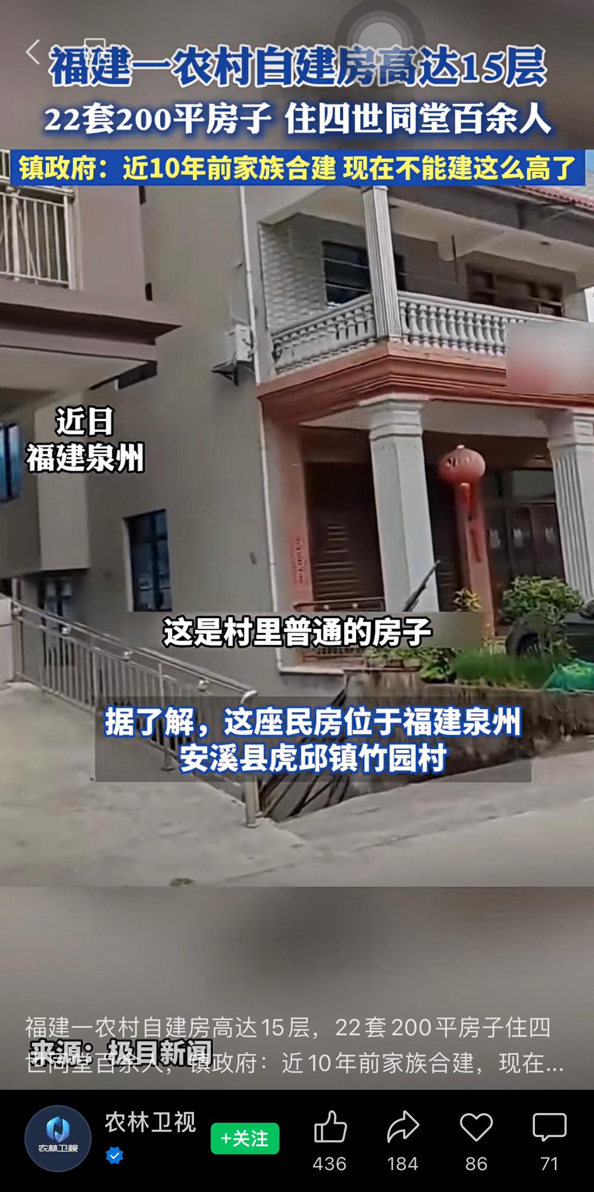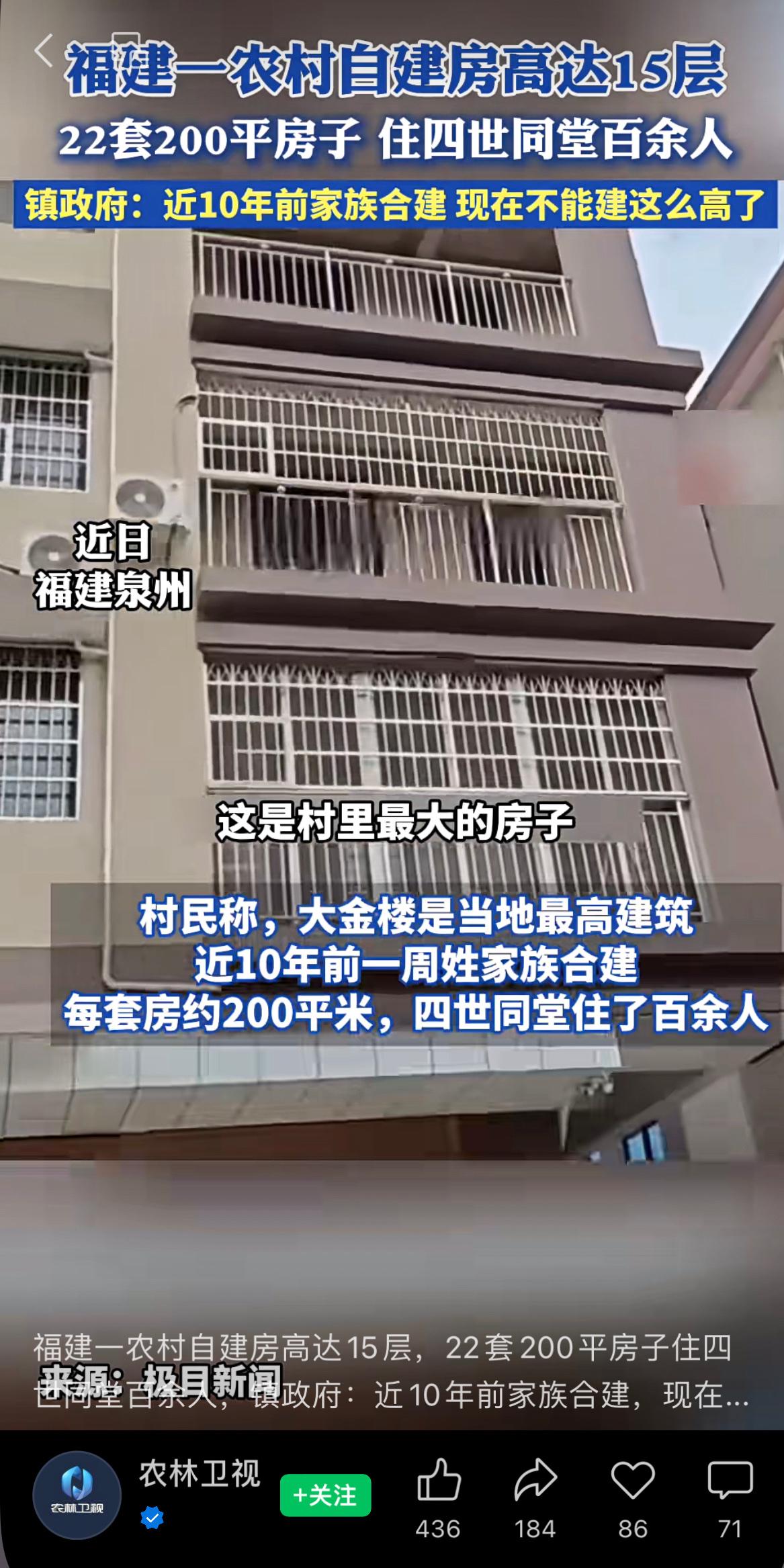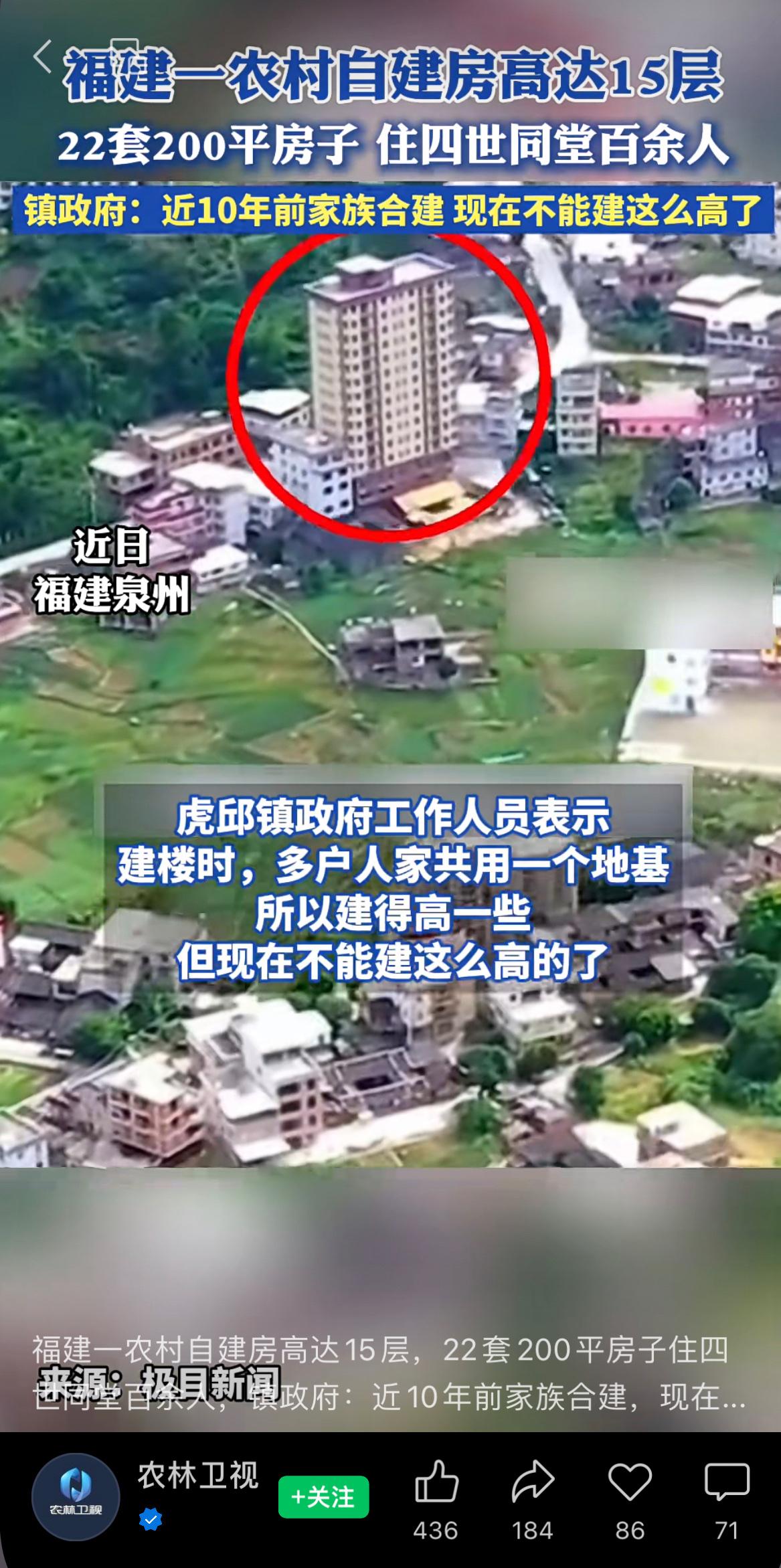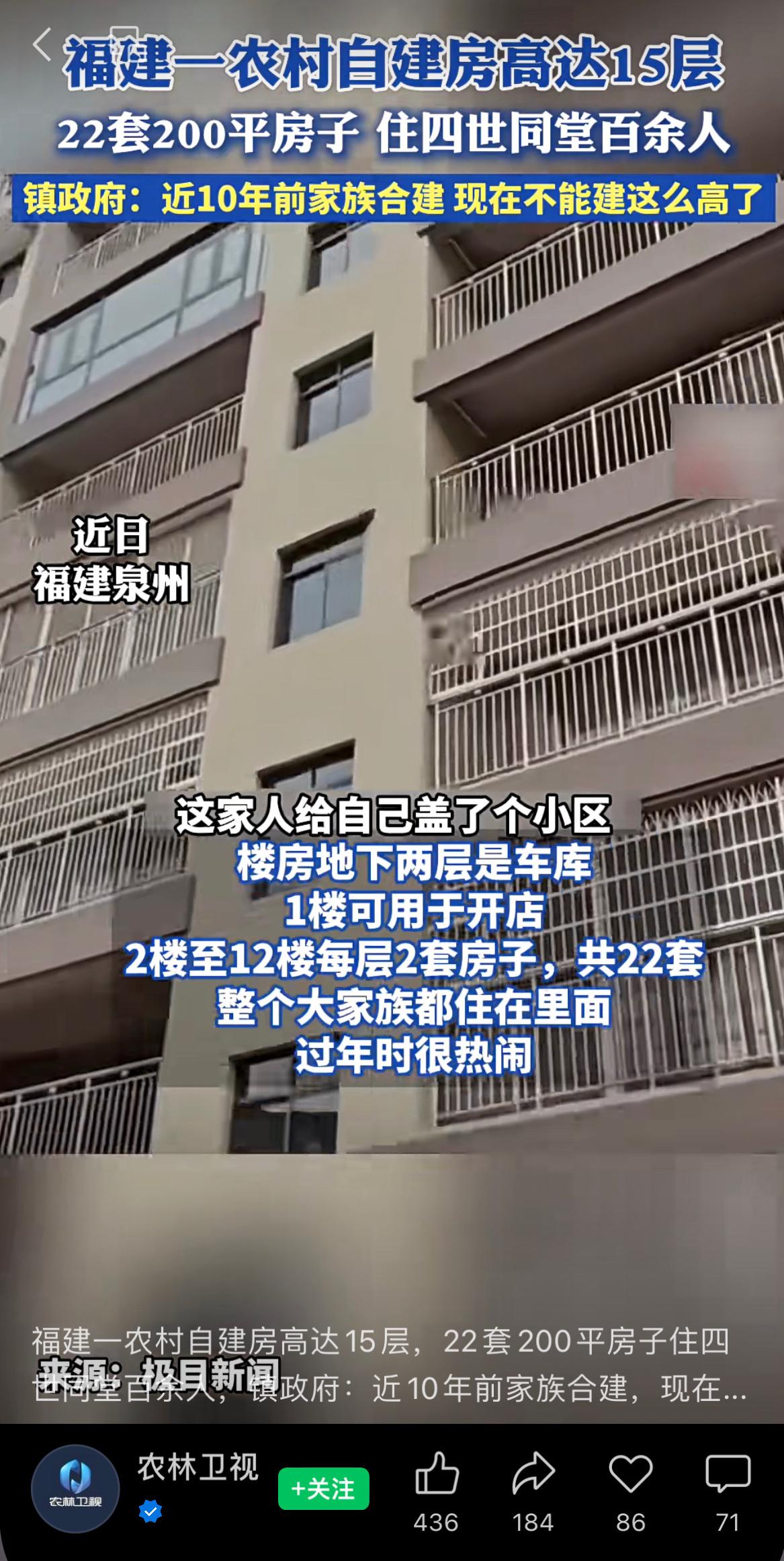福建一农村自建房高达15层,22套200平房子住四世同堂百余人,镇政府:近10年