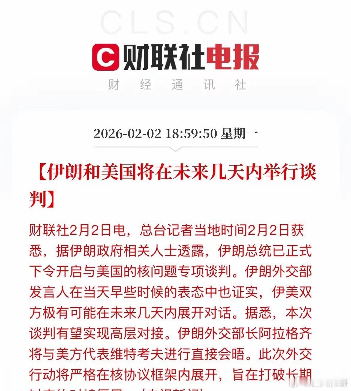 外围市场全线回暖!明日A股有望触底反弹!外围终于传来几大利好消息:1.美伊将在未
