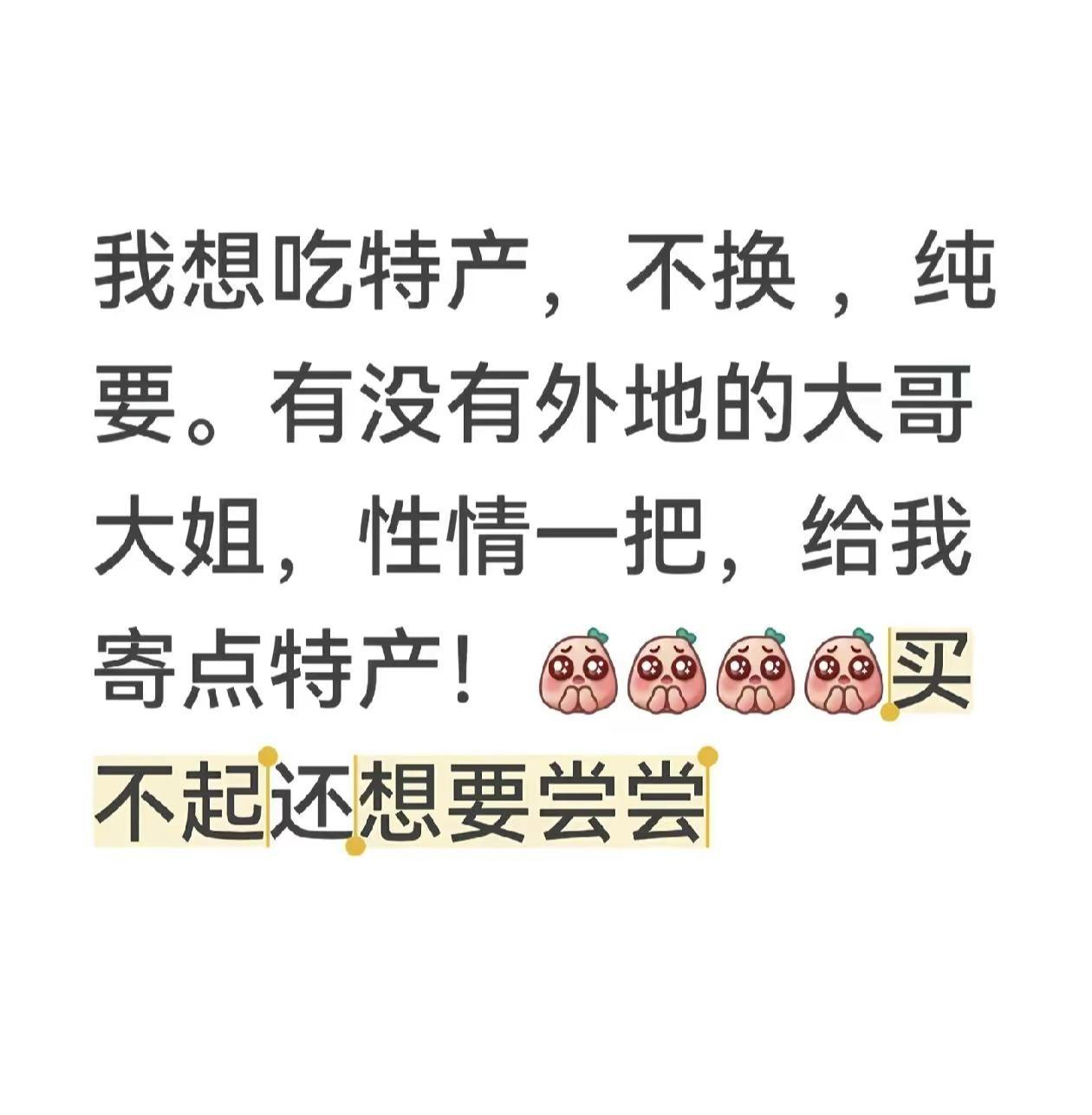 有没有性情大哥大姐 给我寄特产 纯要 不换 主打一个买不起还馋