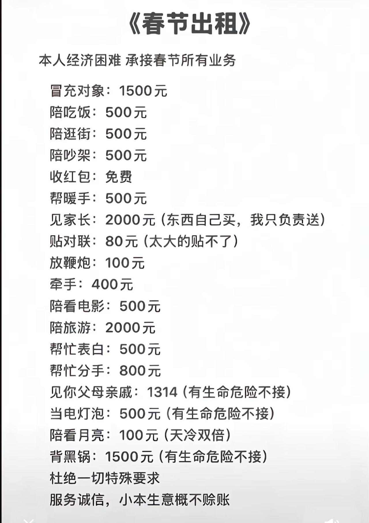 本人因年底缺钱,现决定出租自己,现承接以下业务,小本生意概不赊账!手快有手慢无,请多多支持