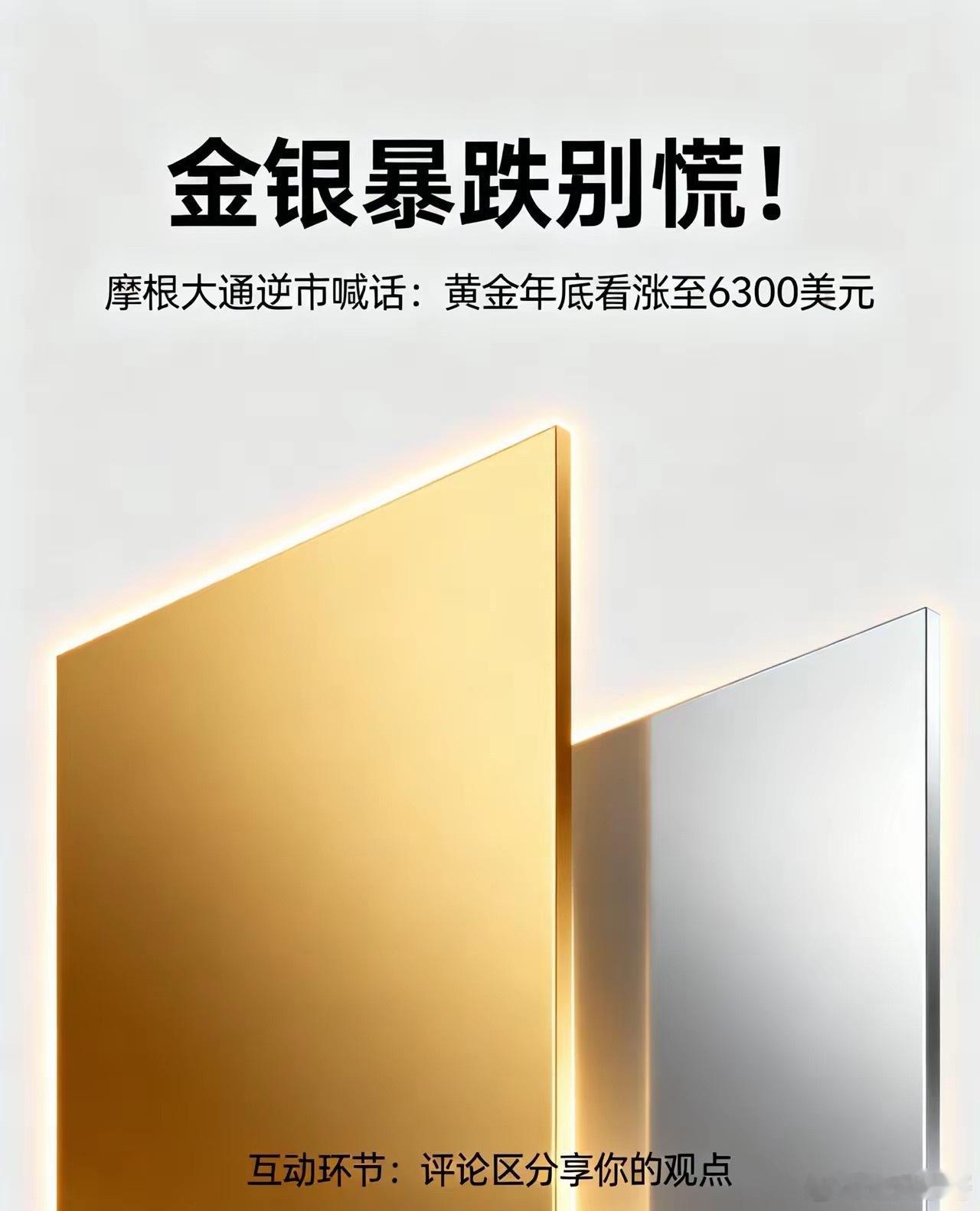 金银价继续大跌金银暴跌别慌!摩根大通逆市喊话:黄金年底看涨至6300美元上周五,黄金、白银上演了一场“惊魂暴跌”——黄金创下近40年最大单日跌幅,白银单日跌幅一度超过30%,市场一片哗然。然而,就在投资者心慌意乱之际,国际投行摩根大通却站出来“唱反调”,不仅坚持看多,甚至将2026年底的金价预测从每盎司5400美元大幅上调至6300美元。为什么暴跌后还敢看多?摩根大通给出的理由十分明确:真正的购买力量并未离场。一方面,各国央行去年在金价已处高位时,依然购入了约863吨黄金,显示出强烈的储备多元化意愿;预计今年这一趋势仍将持续。另一方面,投资者也在加速布局黄金,将其作为应对宏观经济波动与地缘风险的重要“避风港”。“空气虽稀薄,但远未到顶”摩根大通分析师坦言,金价近期上涨确实过快,但这并不代表行情不可持续。他们认为,目前黄金的实际需求依然坚实,还未到达“因涨得太高而自我崩盘”的临界点。中长期来看,来自央行和投资者的结构性需求,将继续为金价提供支撑。白银波动可能更大,投资需谨慎相较于黄金,摩根大通对白银的看法更为谨慎。由于缺少央行这类“稳定买家”的托底,白银价格短期波动可能更加剧烈。不过该行认为,白银价格的中枢仍有望维持在每盎司75-80美元区间。对普通投资者的启示摩根大通的逆市预测提醒我们:短期暴跌并不等同于趋势终结。在投资黄金时,更应关注其背后的长期逻辑——全球央行购金潮是否持续?避险情绪是否还在?而对于波动更大的白银,普通投资者则需多一分警惕,切忌盲目追涨杀跌。黄金市场从来不怕狂风暴雨,怕的是失去锚定的方向。在波动中看清主线,或许才是应对行情起伏的从容之道。你怎么看?是相信摩根大通的远见,继续看好黄金?还是认为暴跌是趋势反转的信号,应该谨慎?或者你对白银的后续走势有独到见解?