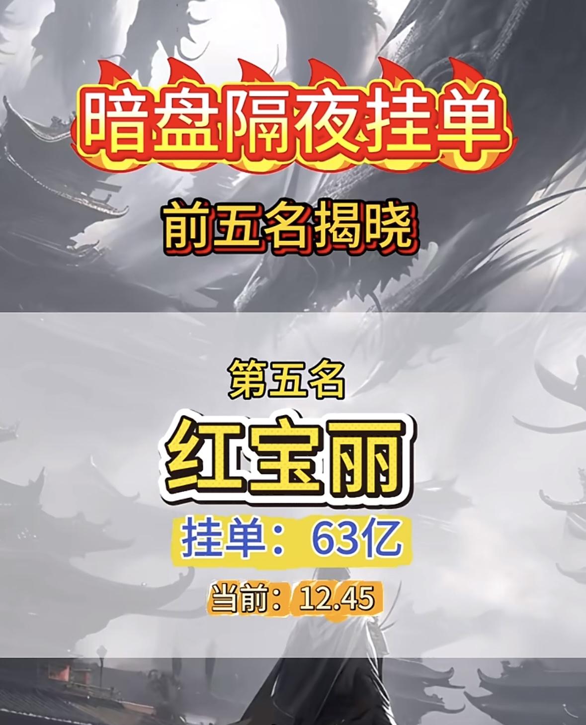 2月3日暗盘隔夜挂单榜首揭晓,红宝丽以63亿挂单领跑! 中国西电登顶暗盘榜首,