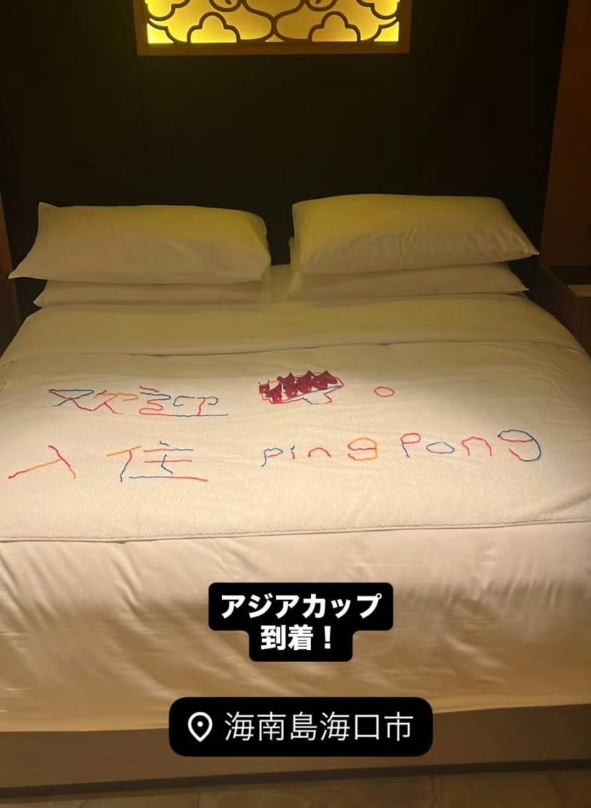 亚洲杯酒店准备的惊喜, 体育的温度传递, 字可以更好看一点。 亚洲杯2月4日开战,国乒孙颖莎,王楚钦,林诗栋,蒯曼,陈熠等人参赛。 值得关注的是,酒店给选手们准备了惊喜。 进入酒店一眼望去,酒店干净整洁,白色的被子上还有惊喜,欢迎入住四个字映眼前,与此同时,画上了鲜花,乒乓球和球拍,令人心情舒畅。 王曼昱和孙颖莎看上去状态都不错,走进校园活动,眼睛笑到一条缝。酒店休息好,比赛才能发挥的更好。 其中,王曼昱在赛场上表情严肃,大力挥着手中球拍,正手和反手衔接快,有时眼睛也在转动着,仿佛在思考什么。 小编认为,王曼昱能够再一次夺得亚洲杯女单冠军,因为,去年4-0战胜了孙颖莎,今年,她将要冲击第二个亚洲杯。
