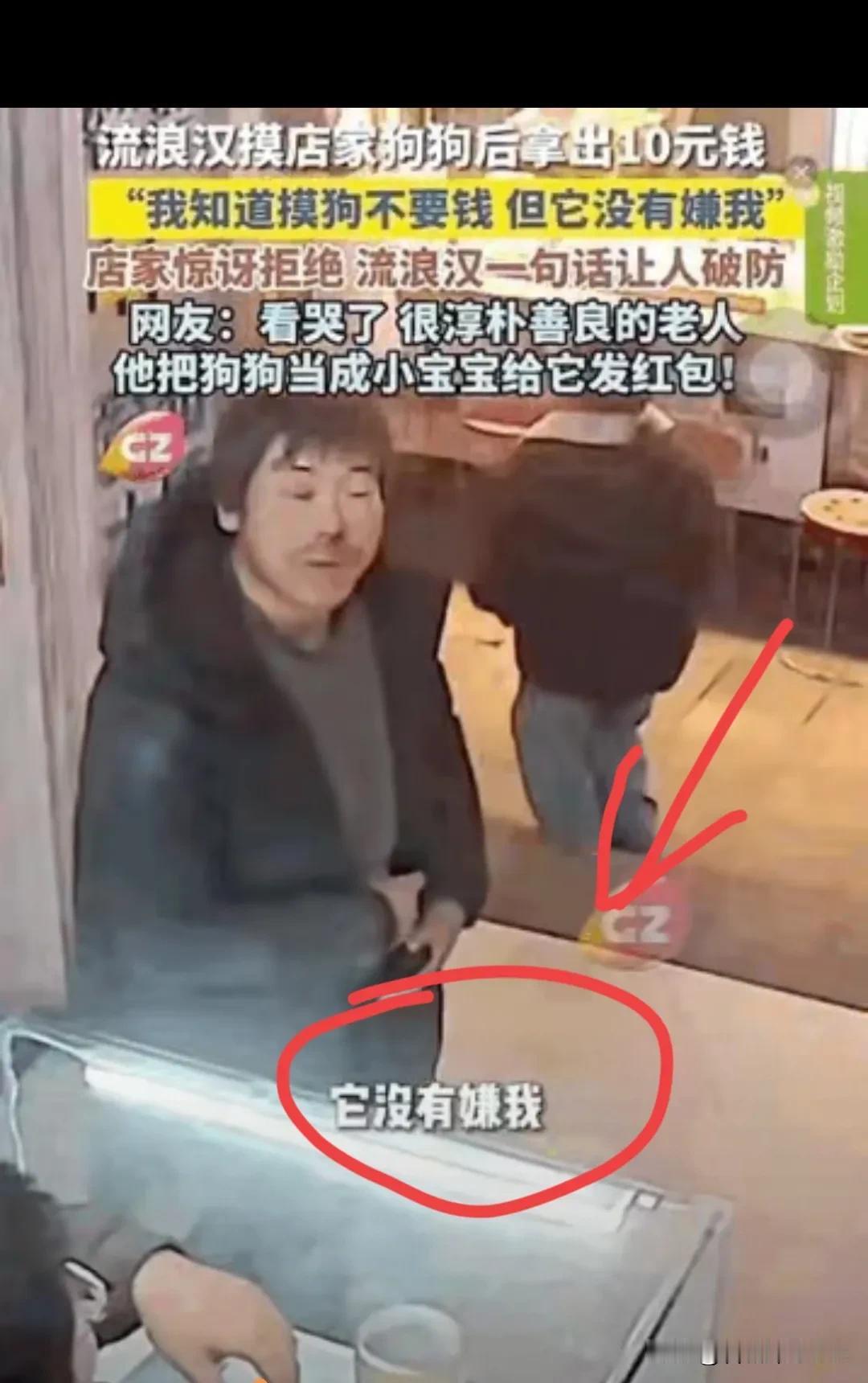 破防了!山西,一流浪汉摸了一下店家的大黄,临走时掏出10块钱现金给店家,店家:“不用,摸狗不收钱的!”但是流浪汉之后一句话让店家红了眼眶。网友:看着看着,眼泪来了! 流浪汉穿着洗得发硬的旧棉袄,领口沾着些灰尘,手背上有几道干裂的口子,刚才摸大黄的时候,动作很轻,像怕惊扰到什么。 他掏出的10块钱,是皱巴巴的,边缘还沾着点污渍。店家把钱推回去的时候,他愣了一下,手悬在半空,半天没收回。 他看着店家,又低头瞥了一眼脚边摇着尾巴的大黄,声音带着点沙哑:“我知道摸狗不要钱,但它没有嫌我。”这句话刚出口,店家的眼眶就红了。 刚才流浪汉蹲下来摸大黄时,大黄主动凑过去蹭他的腿,一点都没躲开,甚至还把脑袋往他手心里拱,那亲昵的模样,和对待其他客人没什么两样。可店家清楚,这几天路过的人里,有人看到流浪汉就皱眉躲开,连靠近都不肯,更别说让他碰自己的东西。 店家赶紧叫住转身要走的流浪汉,从保温桶里舀了一碗热粥,又拿了两个刚烤好的包子,递过去。 流浪汉一开始不肯接,攥着衣角说“我没钱买”,店家笑着把东西塞到他手里:“这是给大黄的朋友的,不收钱。”他这才双手捧着热粥,指尖碰到温热的碗壁,眼泪突然掉了下来,砸在粥碗里,溅起小小的涟漪。 蹲在店门口喝粥时,他断断续续说自己的事。出来打工三年,工地欠薪跑了,身份证又丢了,找不到活干,只能流浪。这几天降温,他就缩在桥洞底下,每天靠捡废品换点零钱。 之前路过很多店,别人都嫌他脏,不让他靠近,只有大黄,见他就摇尾巴,还让他摸。他觉得大黄是唯一不嫌弃他的,所以想给点钱,算是“陪玩费”,不然心里过意不去。 店家听着,把那10块钱又塞回他口袋,说“大黄是店宠,喜欢跟人玩,以后你随时来,粥和包子管够”。流浪汉点点头,咬了一口包子,热乎的馅料烫得他吸了口气,却笑得很开心。 后来他每天都来店里坐一会儿,大黄会趴在他脚边打盹,店家也总会给他留一碗热粥,有时还会把客人剩下的干净食物打包给他。 有人问店家为什么对流浪汉这么好,店家说“他没偷没抢,只是需要一点尊重”。大黄不懂人间的复杂,却用最纯粹的陪伴,给了一个陌生人最珍贵的尊严。 流浪汉的10块钱,不是消费,是对被接纳的感激;店家的热粥,不是施舍,是对善良的回应。 很多时候,我们总在找温暖,却忘了温暖往往藏在微小的细节里。一只不嫌弃人的狗,一碗热粥,一句体谅的话,就能让一个流浪的人卸下防备,让一个普通人红了眼眶。 这份善意没有惊天动地,却比任何豪言壮语都动人,因为它是发自内心的接纳,是不掺杂质的温柔。 各位读者你们怎么看?欢迎在评论区讨论。