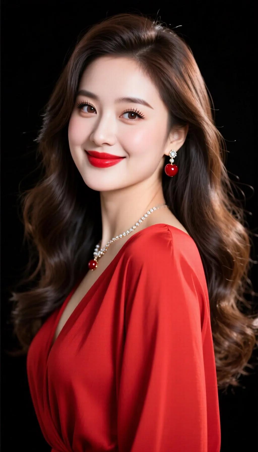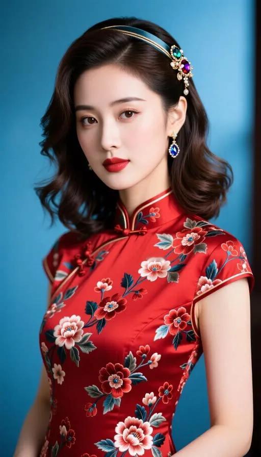 惊艳的东方美人,身着红色旗袍,尽显古典韵味。