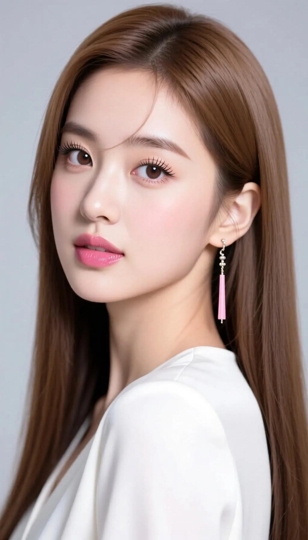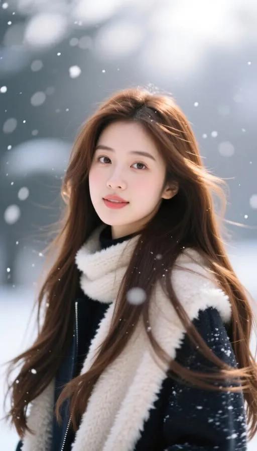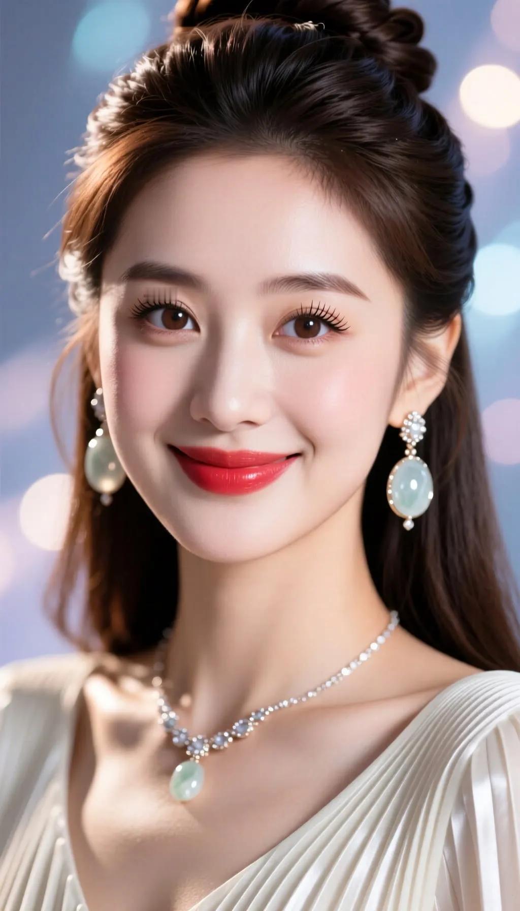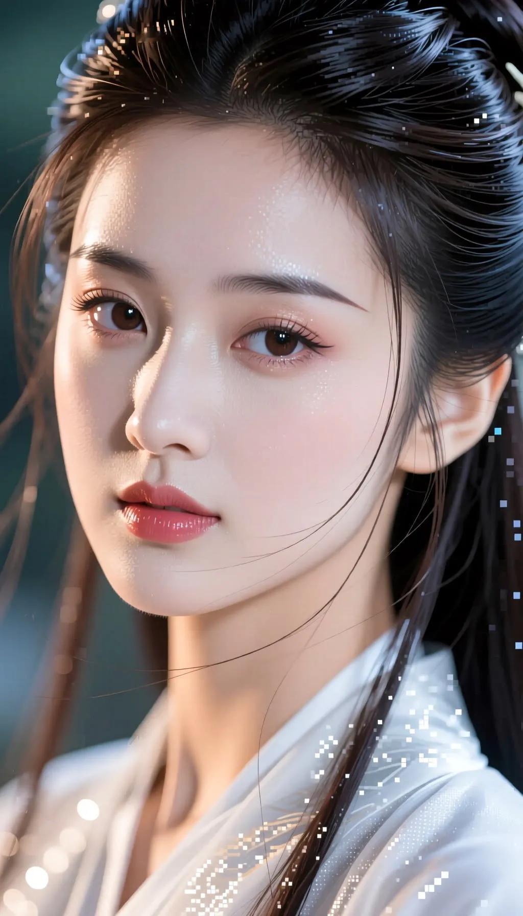 温柔少女,黑发蝴蝶结,白色蕾丝裙,清新自然。