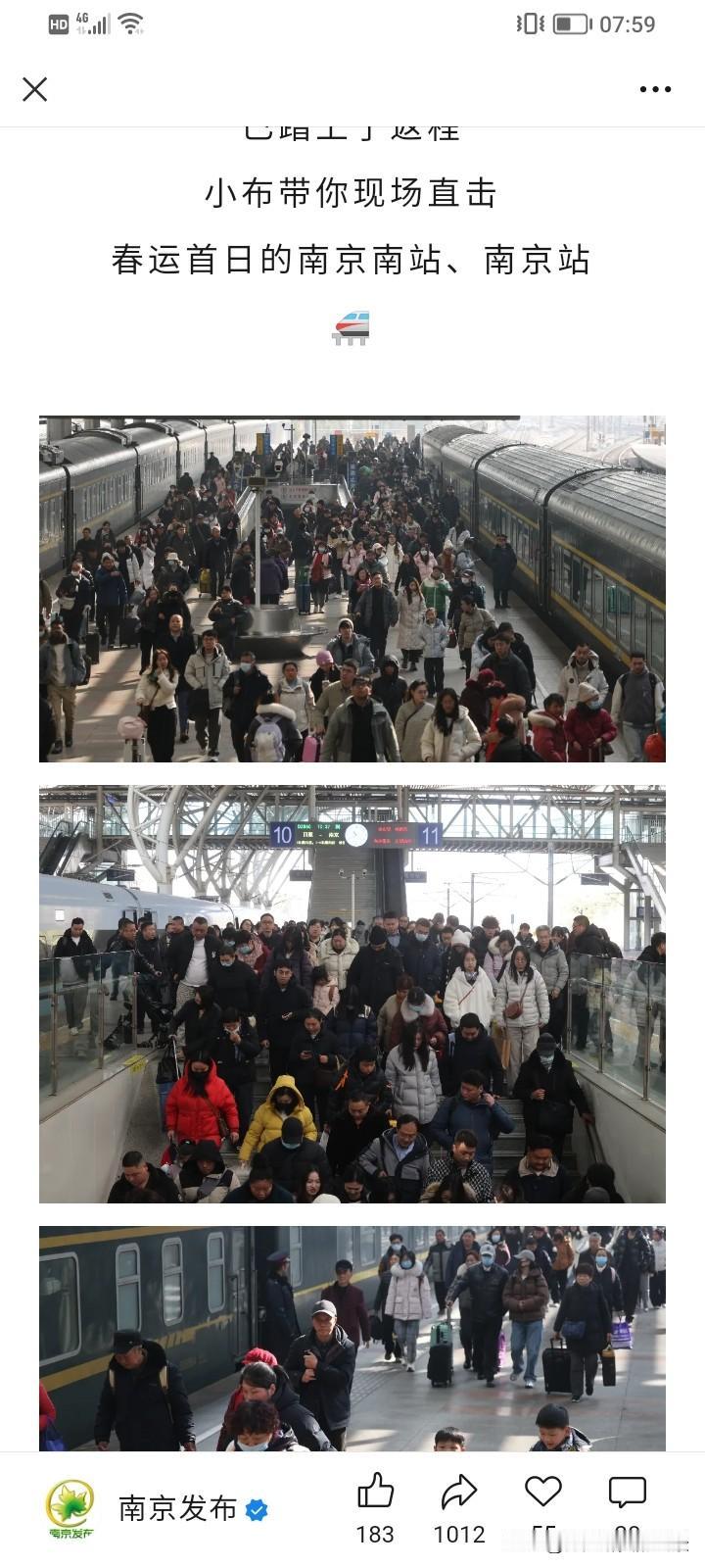 南京站不愧是曾经的顶流,这是春运首日南京站的人流量,真的是哪哪都是人啊,站台上、候车室都挤满了乘客,在前几年比这还多,只是如今南京站的车次减少了很多,尤其是普通车次和之前没法比,那时候南北候车厅都挤满了乘客,如今北候车厅没有多少乘客,很多人都跑到南京南乘车了。 如果南京南的车次能和南京南那么多,相信南京站的乘客不会少,毕竟南京站的位置在这放着呢,可以方便江北和城北以及城东人乘车,而且南京站留下了好几代南京人的回忆,所以说南京人对南京站还是有感情的。