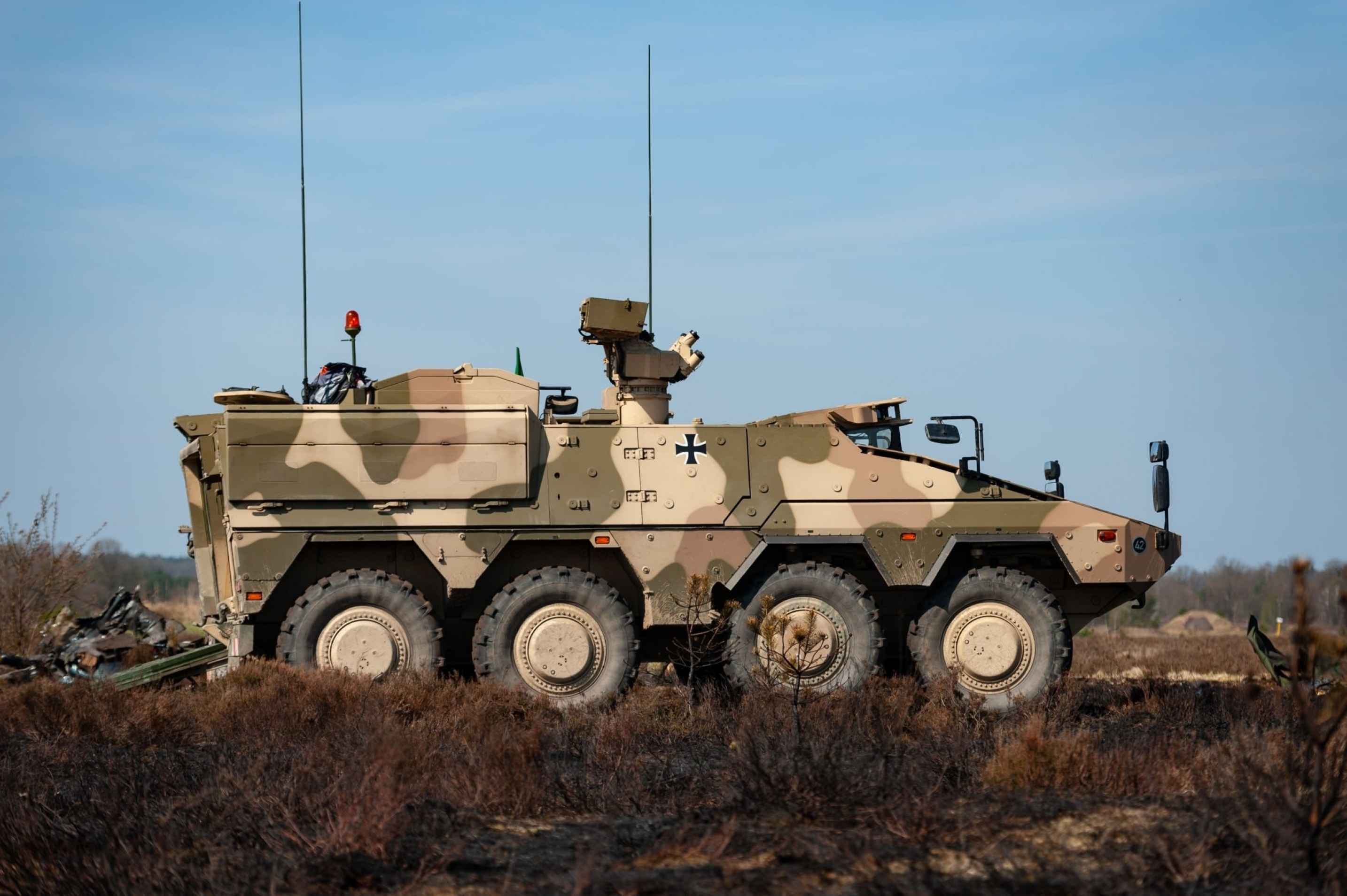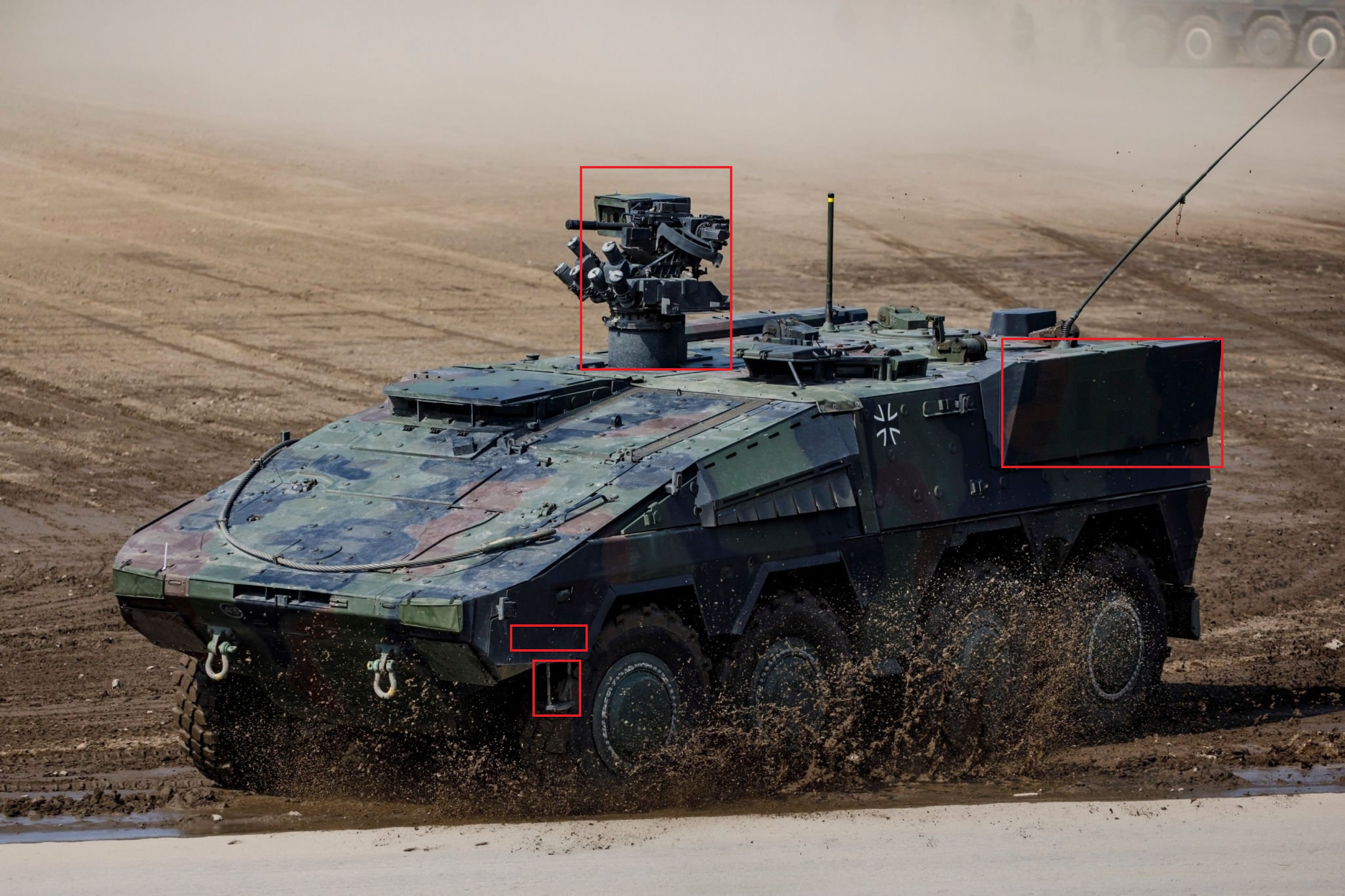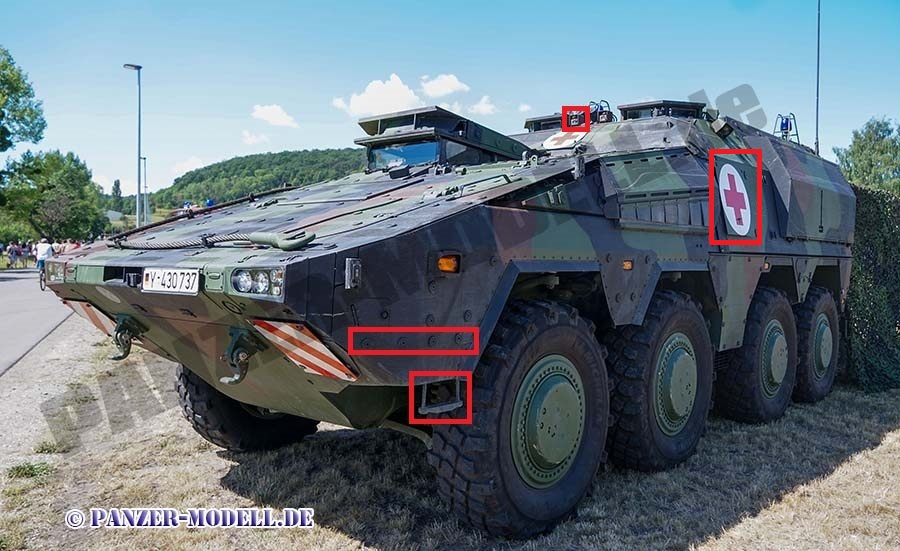 1月29日,德国“拳师犬”轮式装甲车升级计划圆满完成,此次升级计划于2019年启动,共有272辆“拳师犬”A1升级至A2配备,此次升级使德国现有的“拳师犬”装甲车全部升级至A2配置每天认识一件兵器烽火问鼎计划 如何区分A0、A1和A2:看储物箱:尖角(A0/A1) vs 圆润(A2)看登车梯:长(A0/A1) vs 短(A2)看热成像:A0 医疗车没有,其余有看舱盖后储物箱:区分运输型 / 指挥型