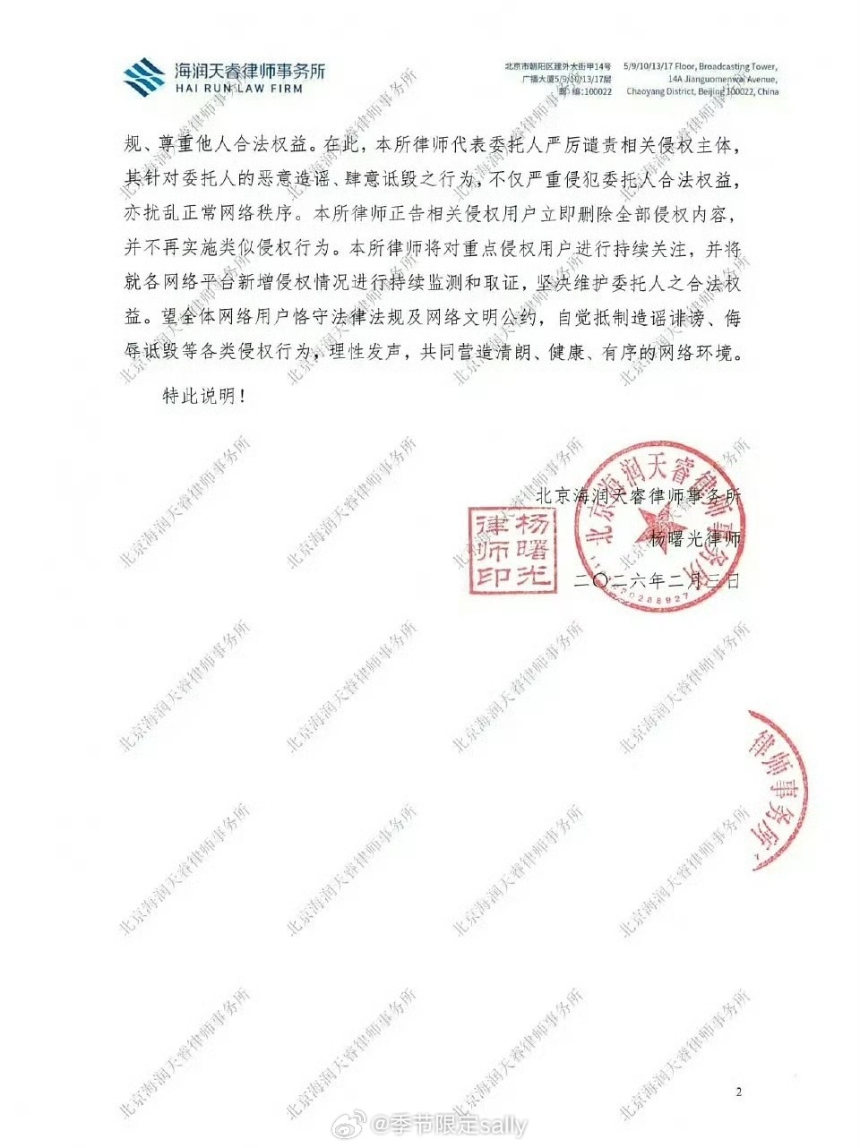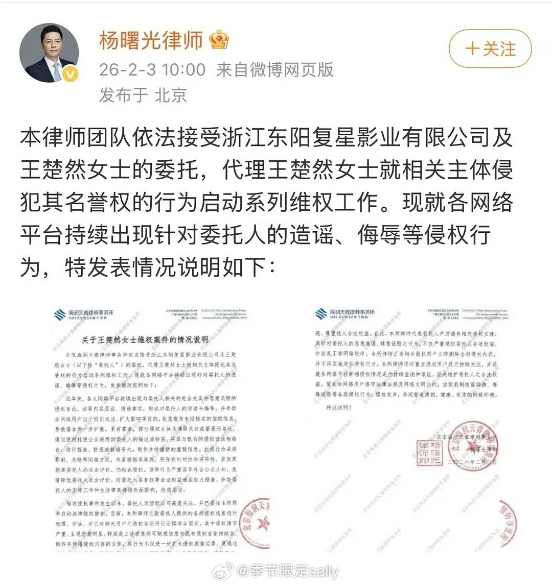 王楚然方发布告黑声明