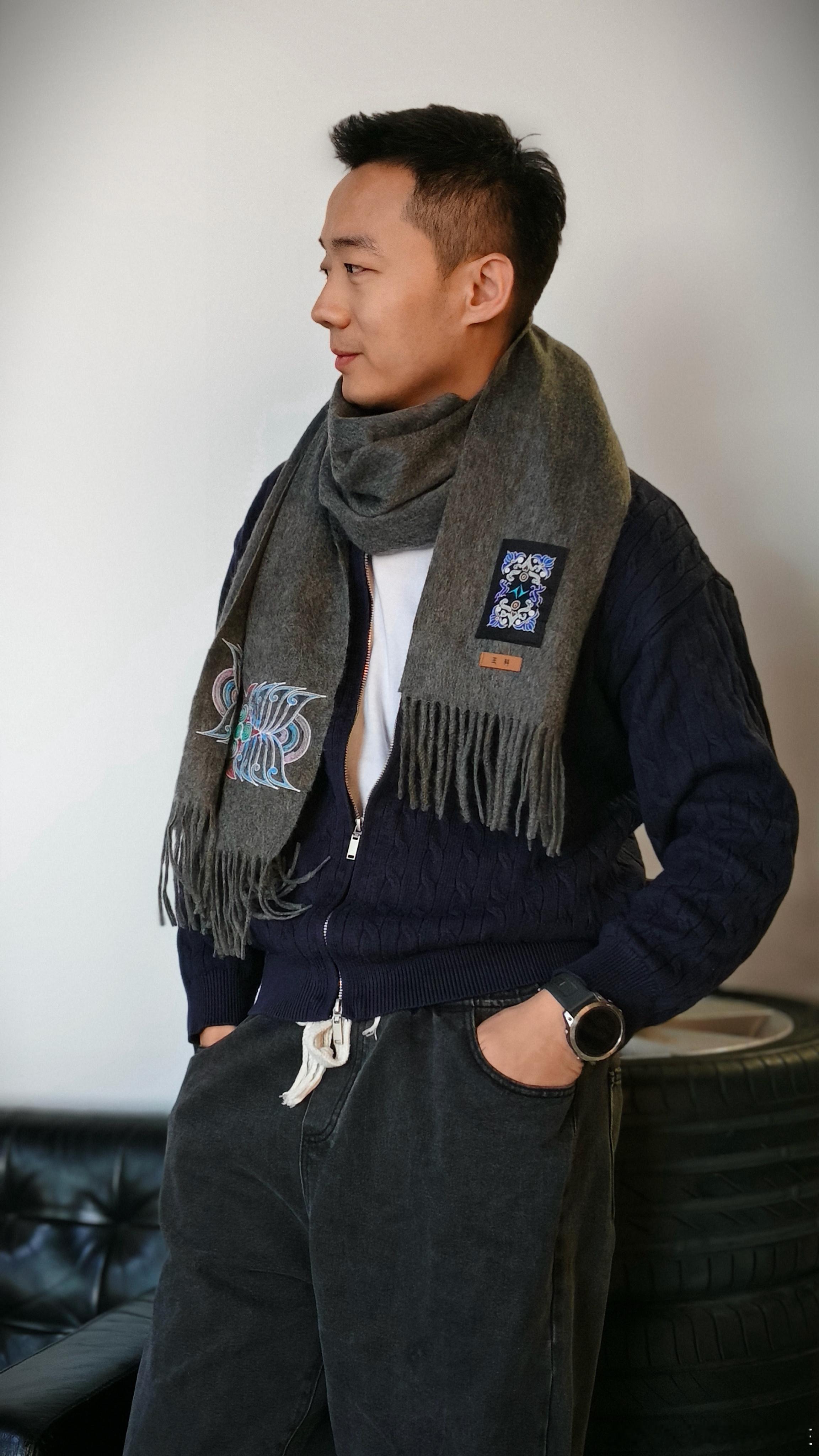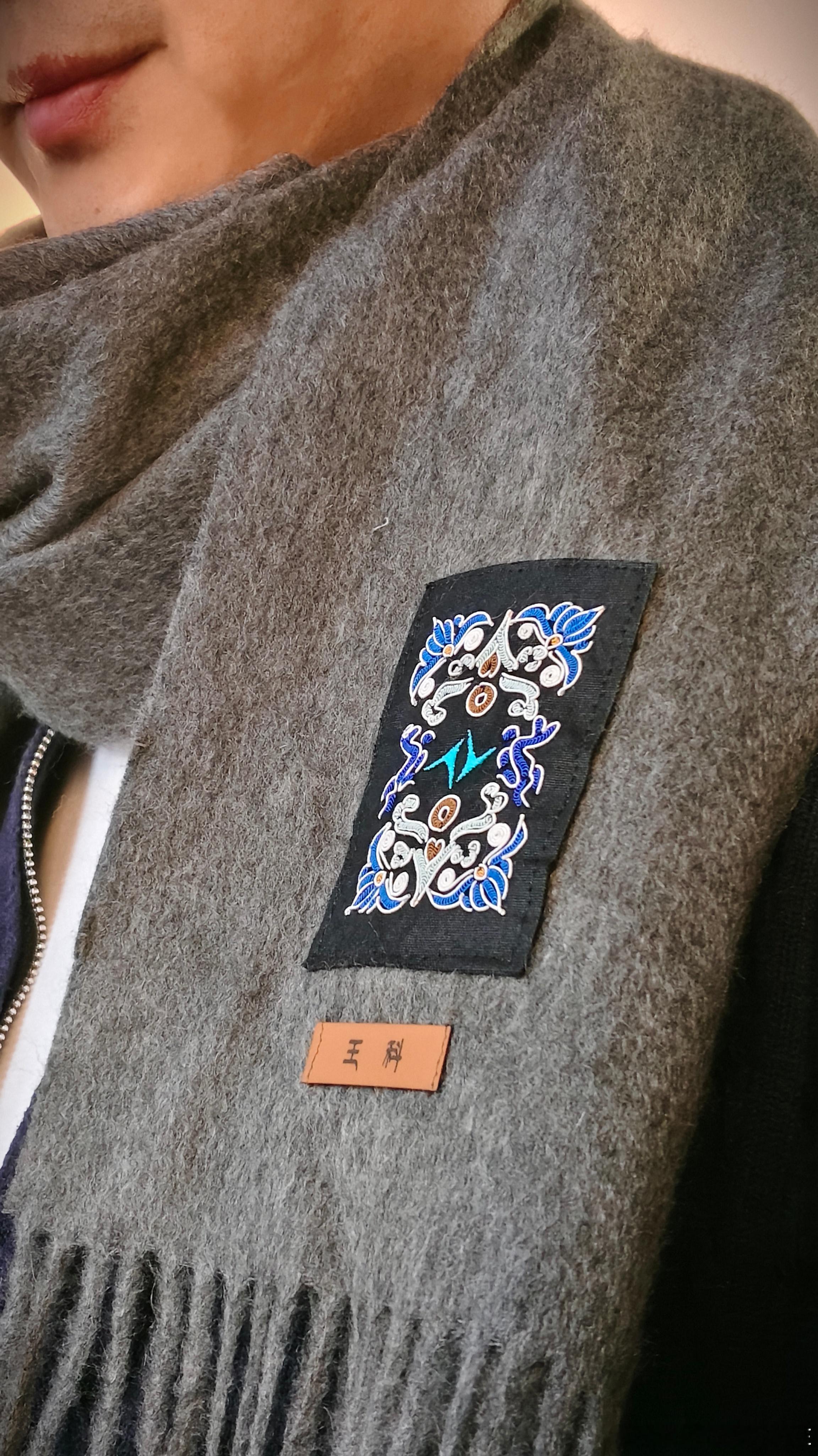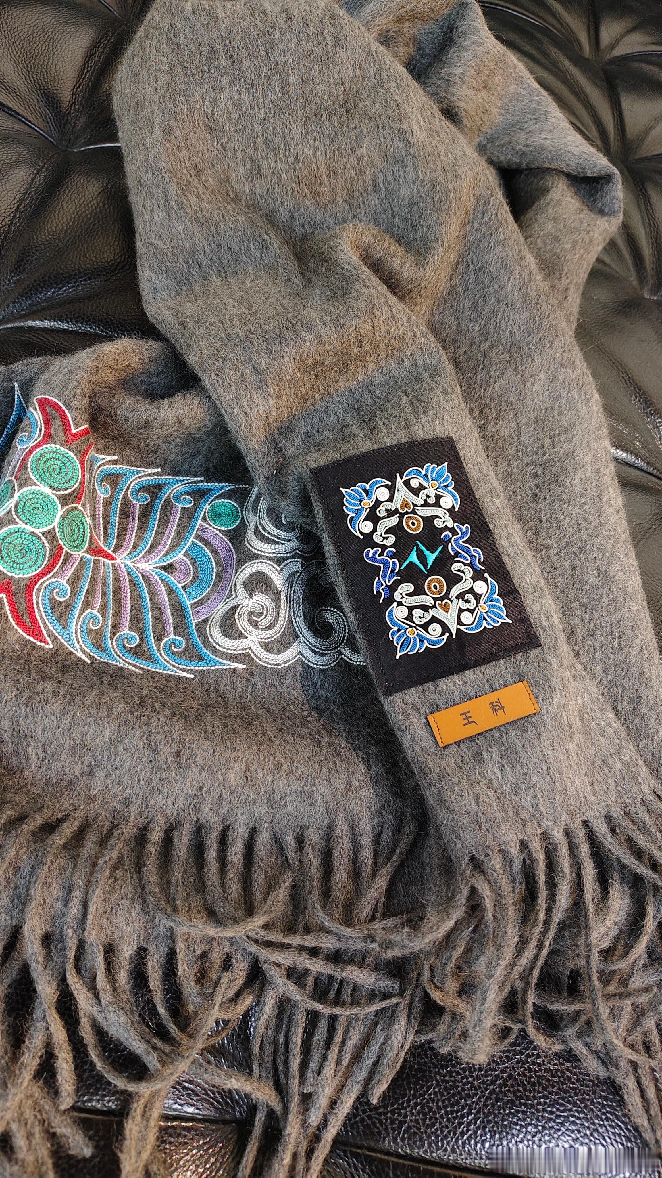 黔南没有去上,水族马尾绣的围巾先用上了!