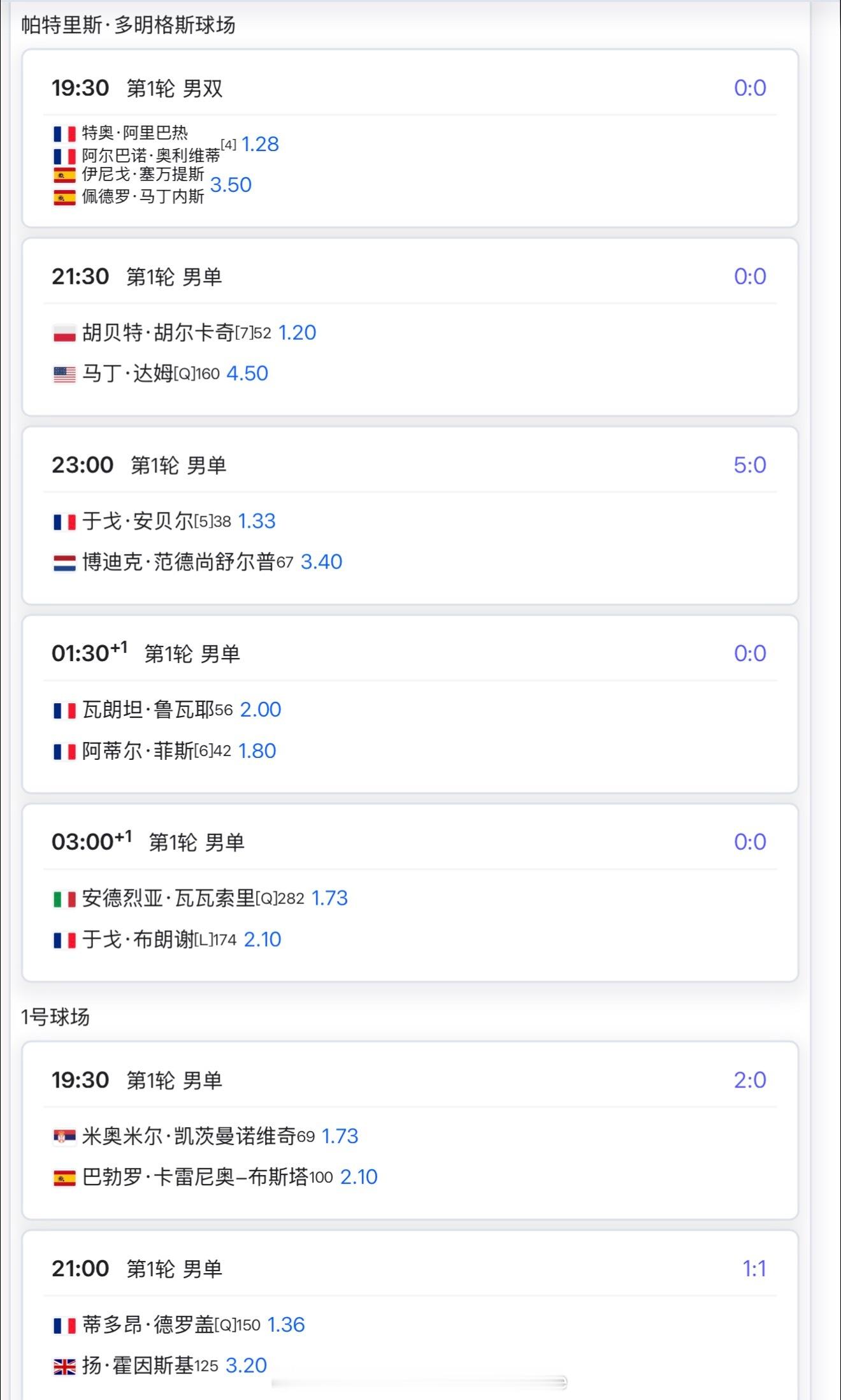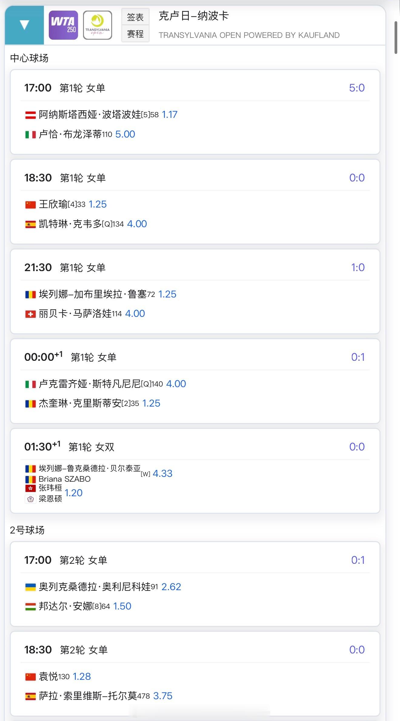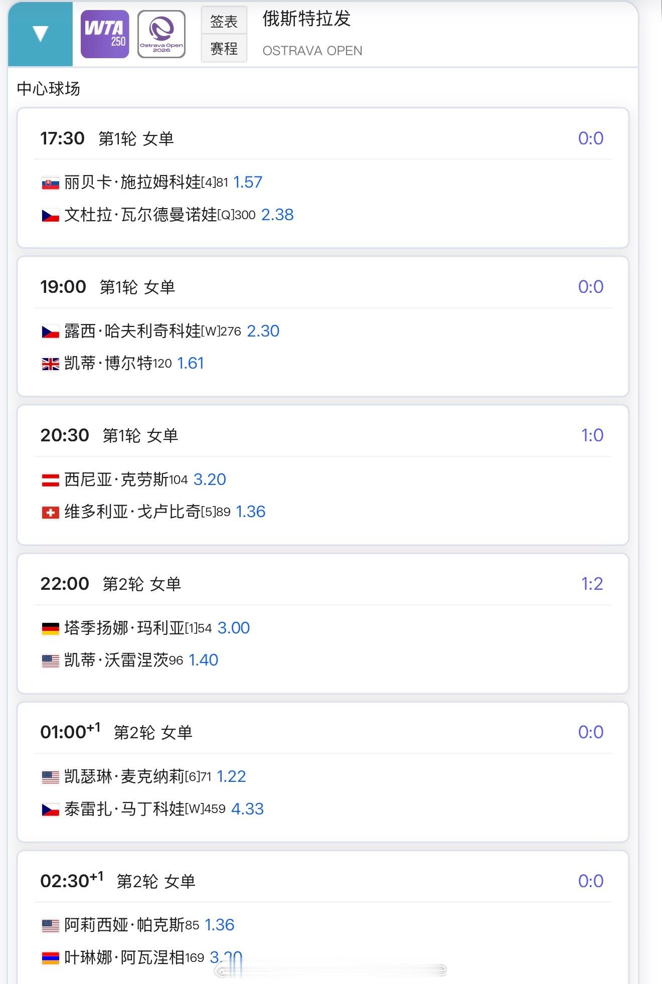 18:30王欣瑜vs克韦多19:00袁悦vs托莫