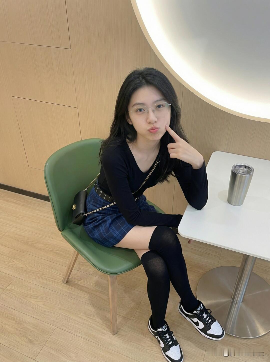 元气少女穿搭,黑色上衣配格纹短裙,时尚又青春!穿搭 氛围感出片穿搭 穿百褶裙可以好看到什么程度?