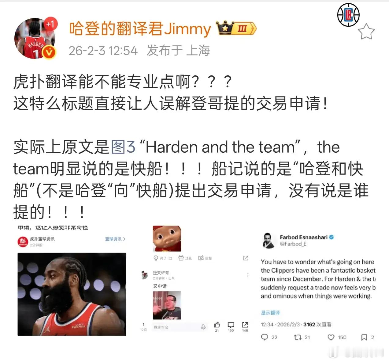 登走不欠!Shams:詹姆斯-哈登正在努力争取在交易截止日期前离开快船!双方都在