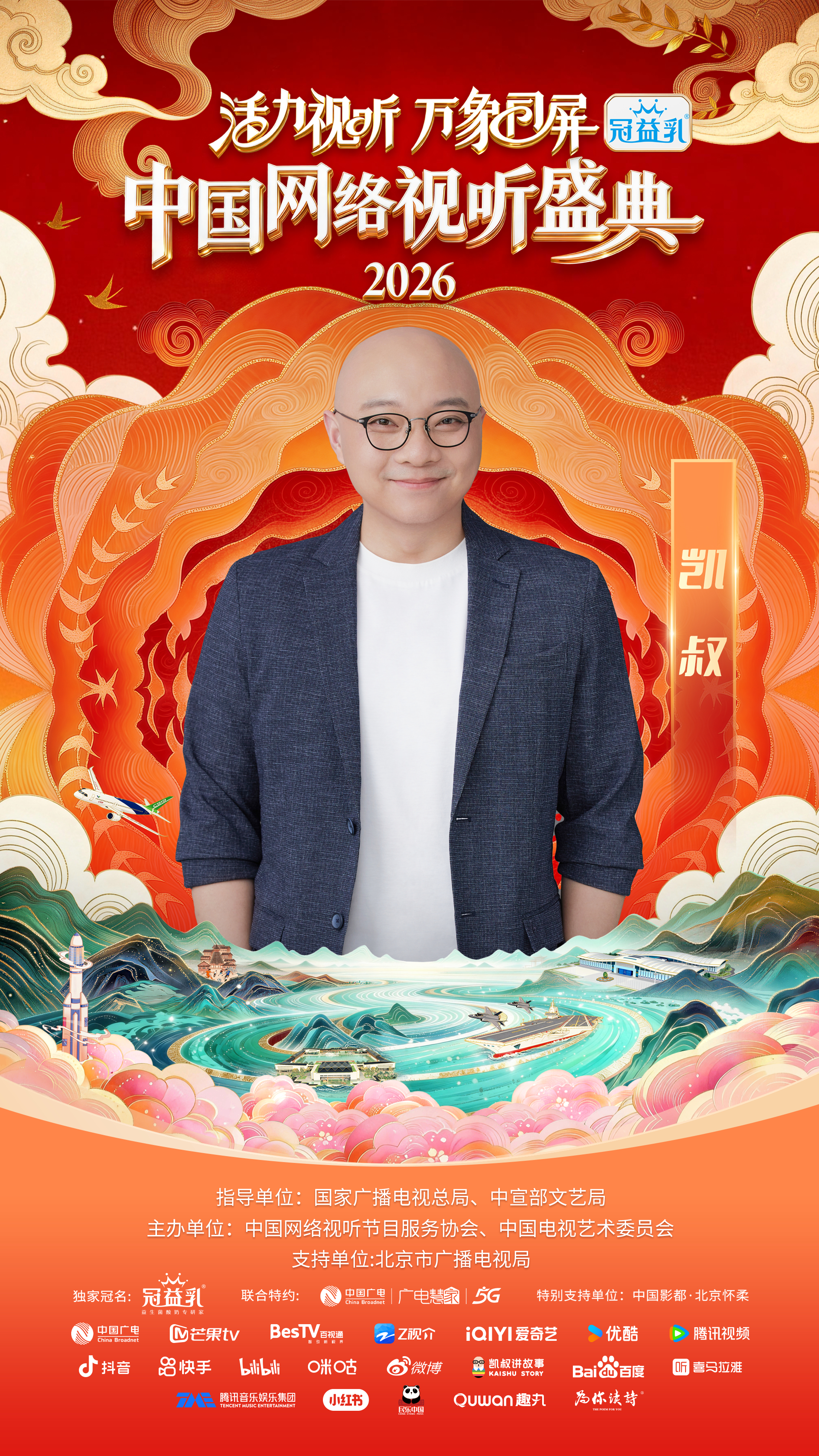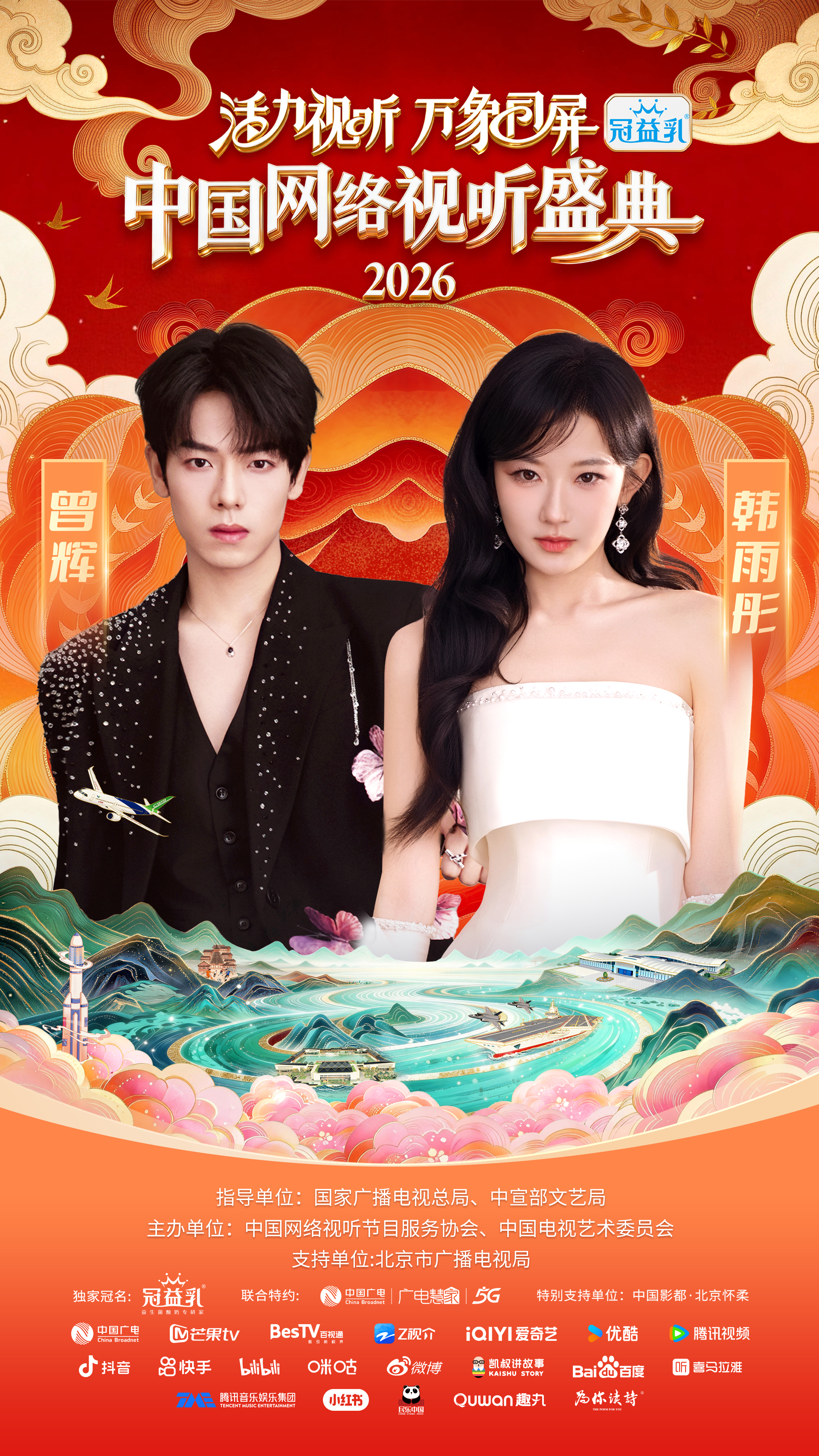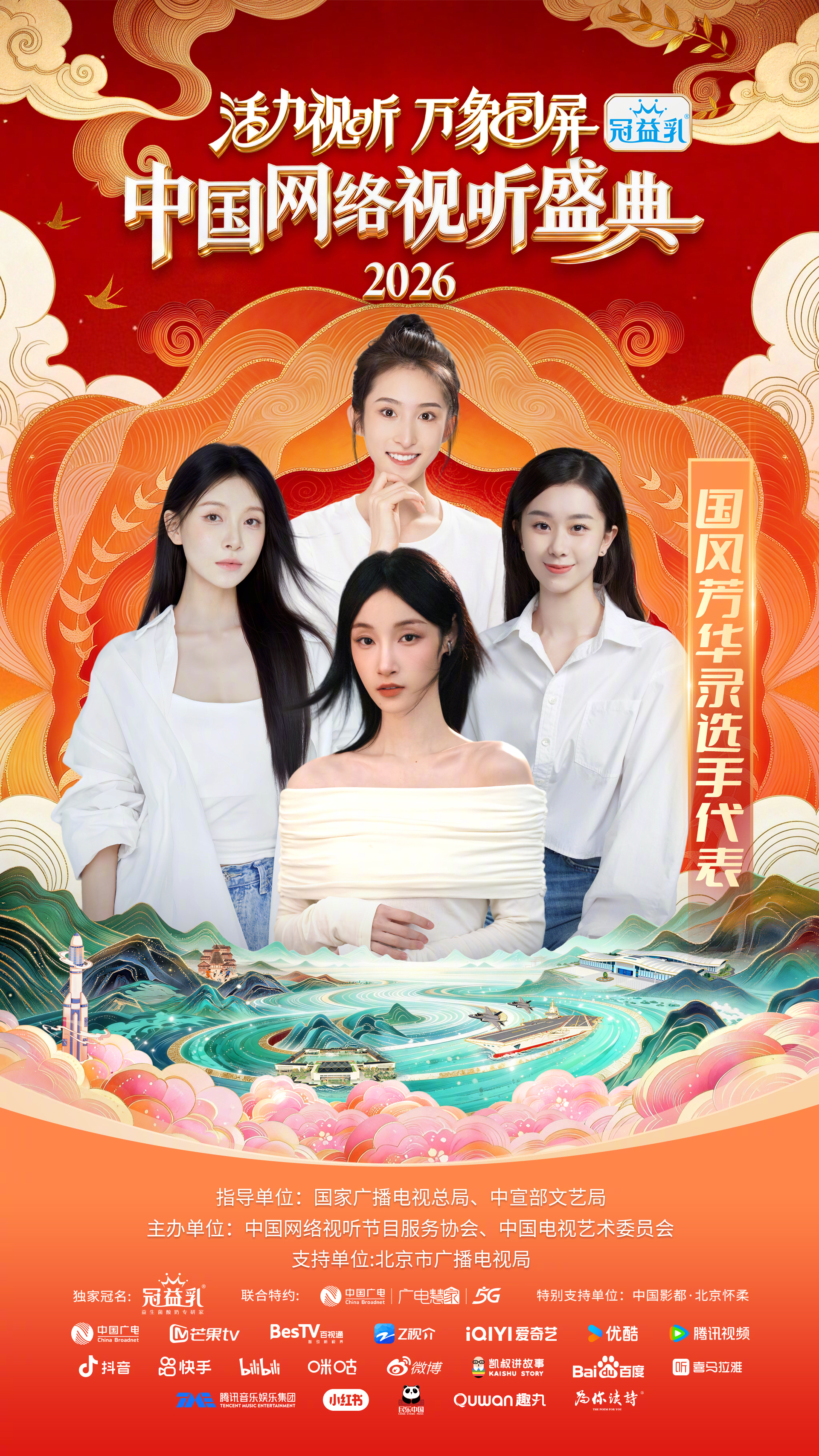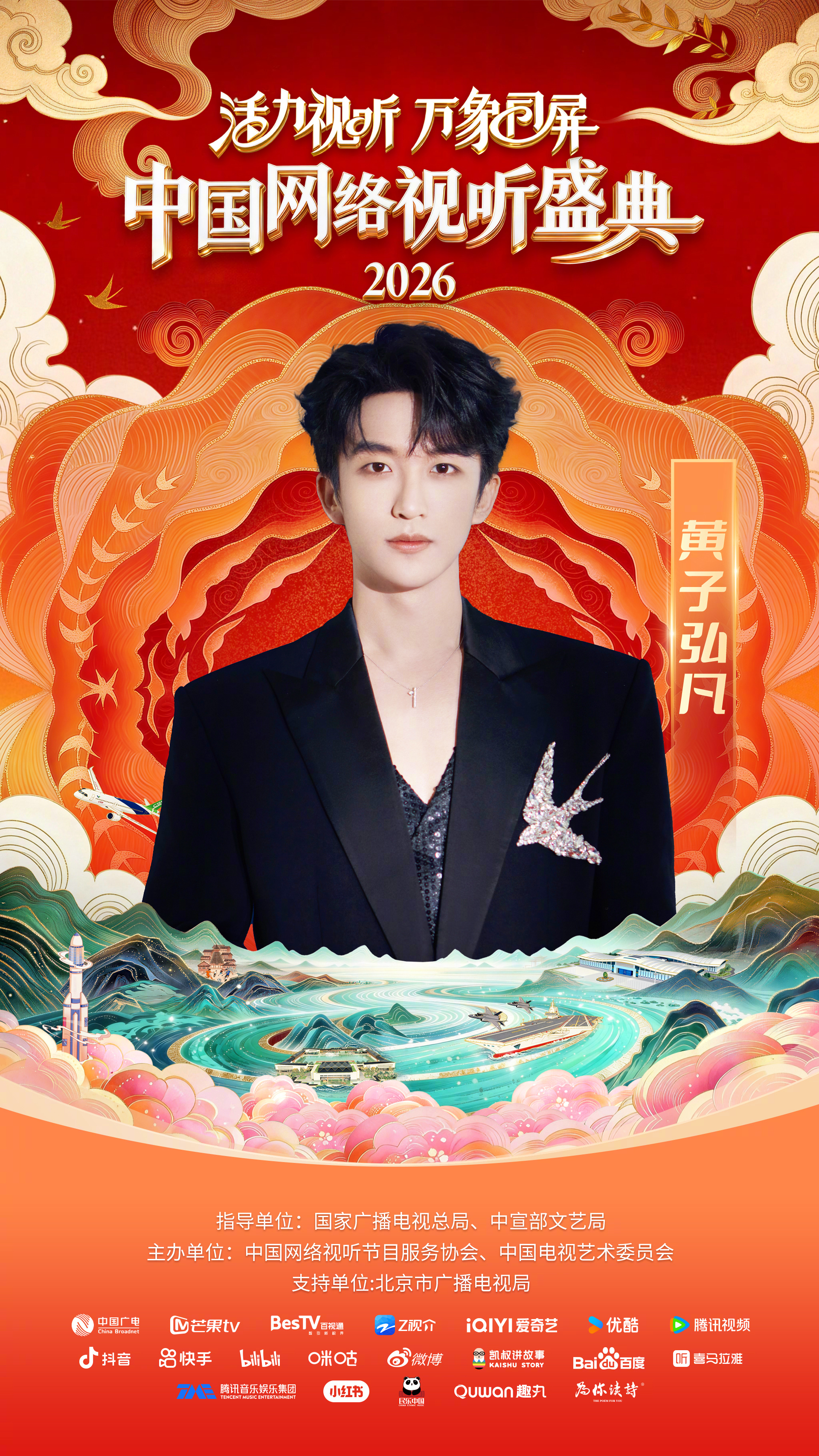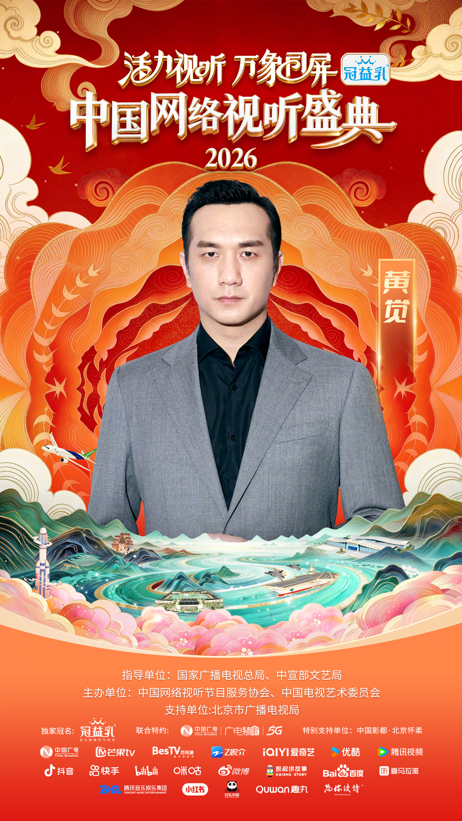 #中国网络视听盛典##2026网络视听盛典阵容官宣 活力视听,万象同屏!网络视听盛典携手国风芳华录选手代表(常欣桐、南希、李安珂、马雯祺)&中国广播民族乐团、韩雨彤、曾辉、胡彦斌 、黄觉 、黄晓明、黄子弘凡、吉祥三妹、凯叔(按姓氏拼音首字母排序),2月7日腊月二十,让我们同屏相守,共赴年度视听盛会!