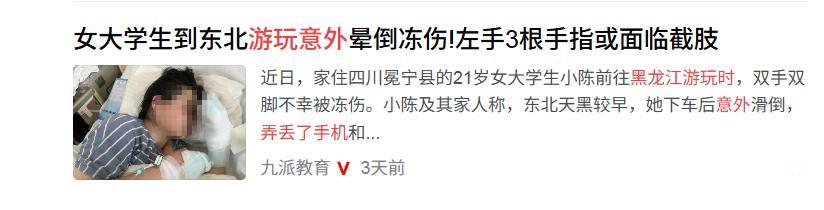 “悲剧还是发生了!”1月27日,黑龙江,一外地女生来旅游时,不慎意外摔倒,弄丢了眼镜和手机,高度近视的她在寻找时再次摔倒,在雪地里面直接昏迷不醒,等被路人发现时已经冻僵,左手三根手指可能会截肢!网友:东北天气真不是说着玩的! 这是一场残酷的视觉博弈:窗外是令南方人神往的北国千里冰封,窗内是一份冰冷到令人窒息的诊断书。左手三根手指坏死,面临截肢。对于一个年仅21岁的女大学生来说,这个医疗判决简直比窗外的气温还要凛冽。 就在几天前,这位来自四川的小陈姑娘,还怀揣着对冰雪世界的极致憧憬,独自踏上了前往黑龙江的旅程。谁能想到,这张通往童话世界的机票,最终把她送进了一场生存噩梦。 把时间轴拨回1月20日傍晚。黑龙江绥化市望奎县,气温已经跌破零下20摄氏度。这里不是热闹喧嚣的冰雪大世界,而是一段人迹罕至的非景区路段。这种地方,恰恰是安全系统的盲区。 悲剧的推演,往往不是从惊天动地的大事开始,而是源于一个微小的物理失衡。刚下车的小陈,脚底一滑,重重地摔在了雪地上。如果这只是一次普通的摔跤,拍拍雪站起来也就没事了。但命运在这个节点上,极其残忍地抽走了她身上最重要的两样东西:手机和眼镜。 对于一个拥有600度高度近视的人来说,失去眼镜意味着物理世界的“黑屏”。而在陌生荒野丢失手机,则意味着数字世界的“断连”。 一瞬间,她不仅是个异乡人,更成了一个被切断所有感知通道的“孤岛”。那种恐惧是可以想象的。眼前氤氲着一片迷茫的白茫,混沌难辨。伸手摸索,却发觉手中空空如也,竟无任何通讯工具可寻。她只能凭借本能在雪地里盲目摸索。 就在这慌乱的移动中,死神落下了第二颗棋子。她在摸索中再次滑倒,头部剧烈撞击地面。这次撞击直接导致了她瞬间昏迷,身体的防御机制彻底停摆。 零下20度的极寒空气,此刻变成了最无情的行凶者。它像无数把看不见的微型刀片,无声地切割着昏迷者的神经和血管。 在医学上,这叫低温侵袭。在现实中,这就是在和死神抢时间。因为地处非景区,路人稀少,救援的窗口期被客观拉长。等到当地居民发现雪地里的异样并报警时,小陈的身体早已僵硬。警医联动的速度很快,但低温造成的不可逆伤害已经形成。 1月28日,当父亲陈先生跨越省界连夜赶到病房时,看到的不仅是满身管子的女儿,更是作为一个父亲最深的无力感。 双手双脚三度至四度冻伤,尤其是那几根发黑的手指,每一寸坏死的皮肤都在诉说着那个夜晚的绝望。 更让人唏嘘的是,这原本是一场“瞒着父母”的独游。现在的年轻人习惯了报喜不报忧,习惯了在朋友圈晒精修的雪景图,却往往低估了“千里走单骑”背后的巨大风险。 这一跤,摔碎的不仅仅是那副近视眼镜,更是对大自然盲目乐观的认知泡沫。好在,冰封的土地上还有温热的人心。随着舆论的发酵,2300多名素未谋面的陌生人伸出了援手。这些汇聚而来的捐款,虽然无法逆转肢体的坏死,但至少为这个风雨飘摇的家庭撑起了一把伞。 但这依然是一个沉重的警示。当直面零下20度的凛冽极寒,人类那看似坚韧的肉体凡胎,实则脆弱如纸,在这冰寒的肆虐下,几无招架之力。 信息来源:《四川女大学生到东北游玩晕倒雪地冻伤,左手三根手指或面临截肢,2300余名爱心人士伸援手》杭州日报