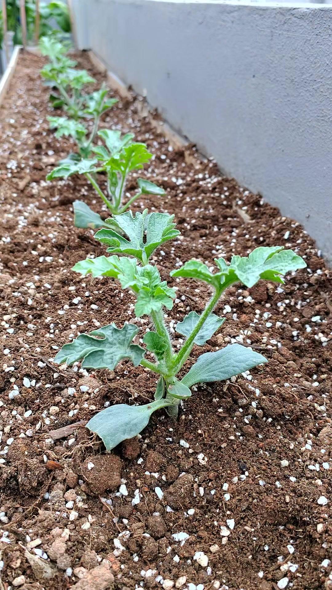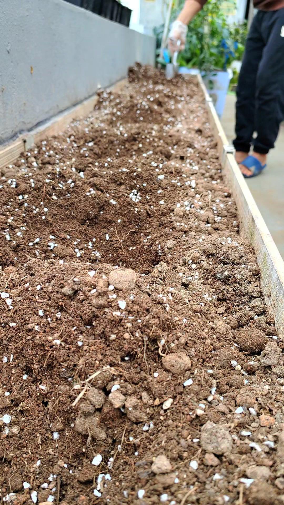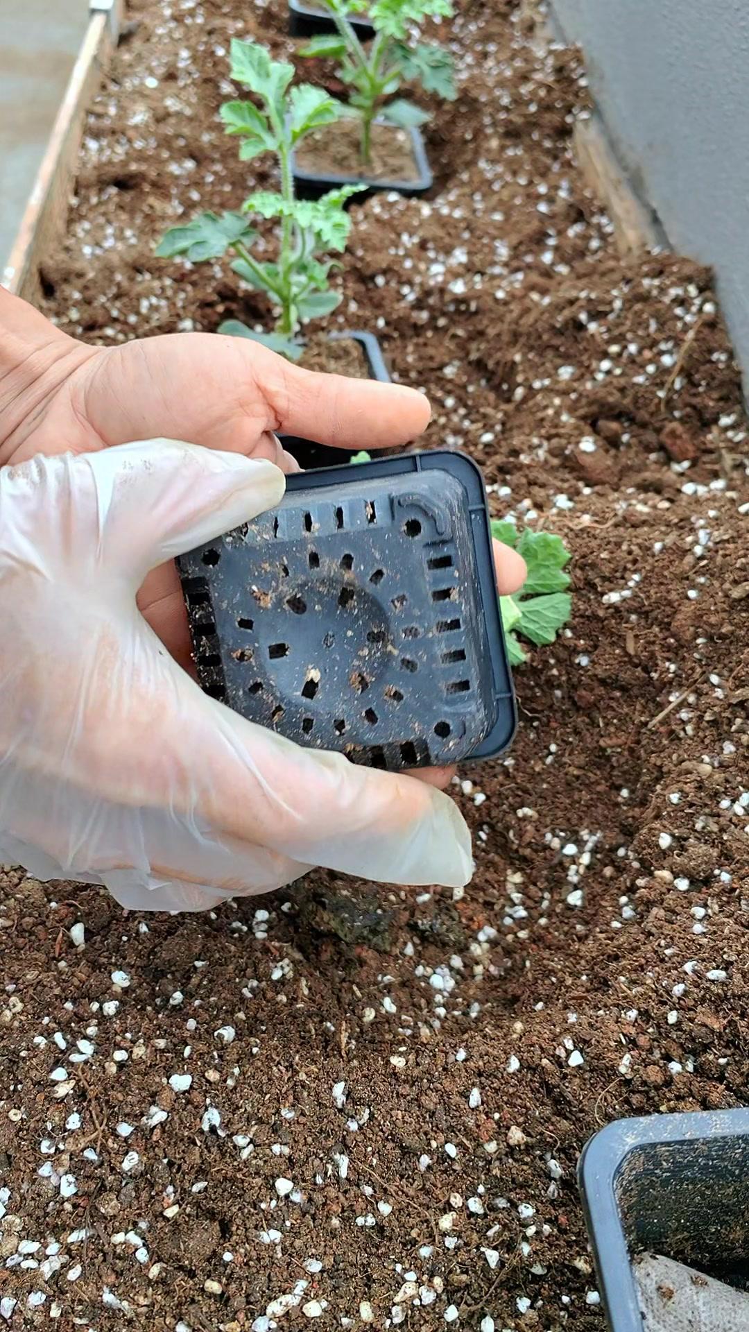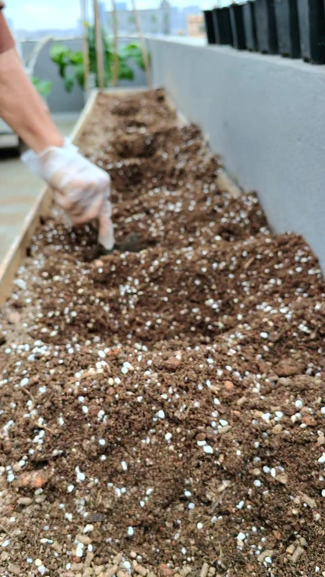 阳台种西瓜全攻略!从育苗到定植超简单~🌱育了一个月的西瓜苗根系都长到盆外了,赶紧移到3米2的大箱子里,这样才能长得更快。10棵苗间距30公分刚好,坑的深度要和育苗土厚度一致,不然西瓜根舒展不开。 1️⃣施足底肥:每个坑放大半把发酵好的豆粕颗粒肥,再和土壤拌匀,营养够足才能结大瓜~ 2️⃣带土移栽:苗杯底下垫块土工布防漏土,倒扣着轻轻把苗拿出来,完整带土坨移栽,这样不用缓苗,活苗率超高! 3米2的大箱子种满10棵,看着这些根系发达的壮苗,感觉很快就能吃到自己种的甜西瓜了,成就感满满~