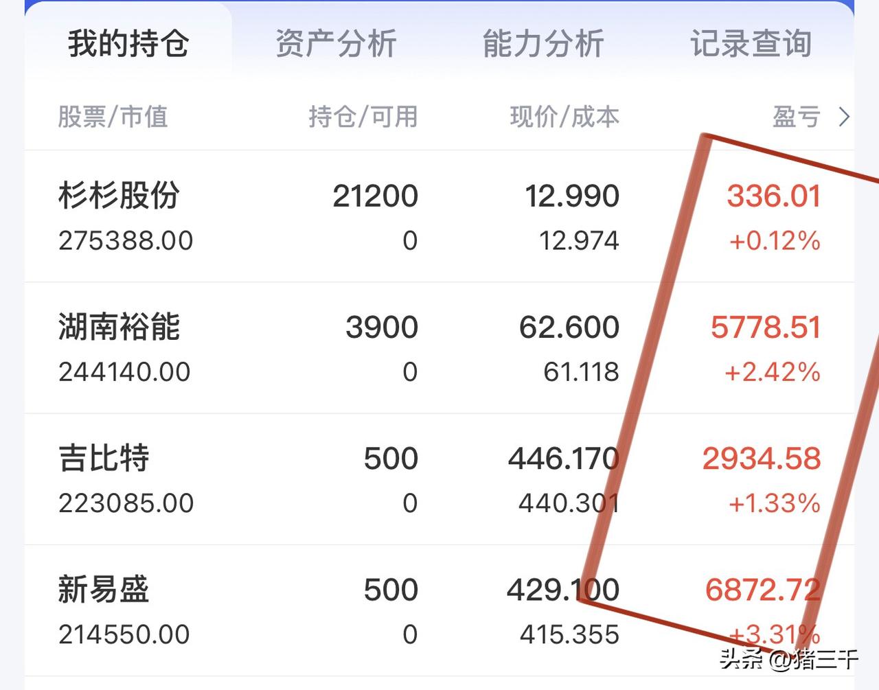 收评,牛市无声胜有声! 昨天恐慌抛售的拍断腿、 昨天没抄底的也拍断腿。 股市就是这么奇妙, 玩弄你的情绪于股掌之间! 三千昨天抄到了先导智能, 今天技痒难耐出击新易盛、吉比特, 杉杉股份和利元亨奉行一鱼多吃反复吃原则, 看明天能不能顺利把米带走! … 普涨的盘面没啥点评的吧? 有色金属关键矿产储备利好刺激, 这里江西铜业等先看修复前高。 电池方向的钴镍具备波段价值, 华友钴业业绩好到飞起。 太空光伏也涨到只能观望了! 看来看去还是三大主线有机会: Ai应用和算力、消费医药、固态电池。 贵州茅台今天又是大阳线! …