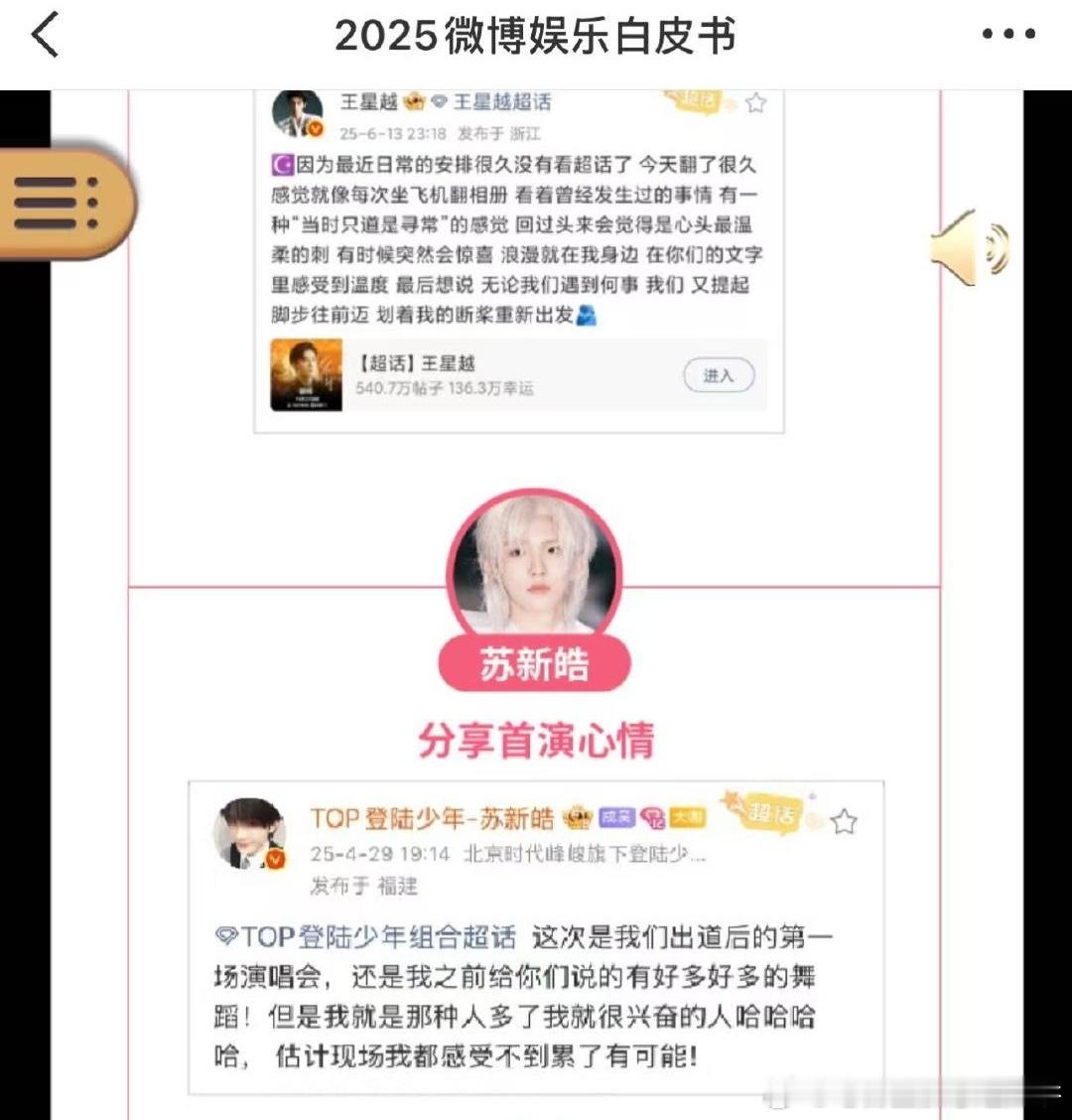 2025微博娱乐白皮书相关榜单出炉,苏新皓再次入榜,钻3周数达10周,钻3微博超话排行第九