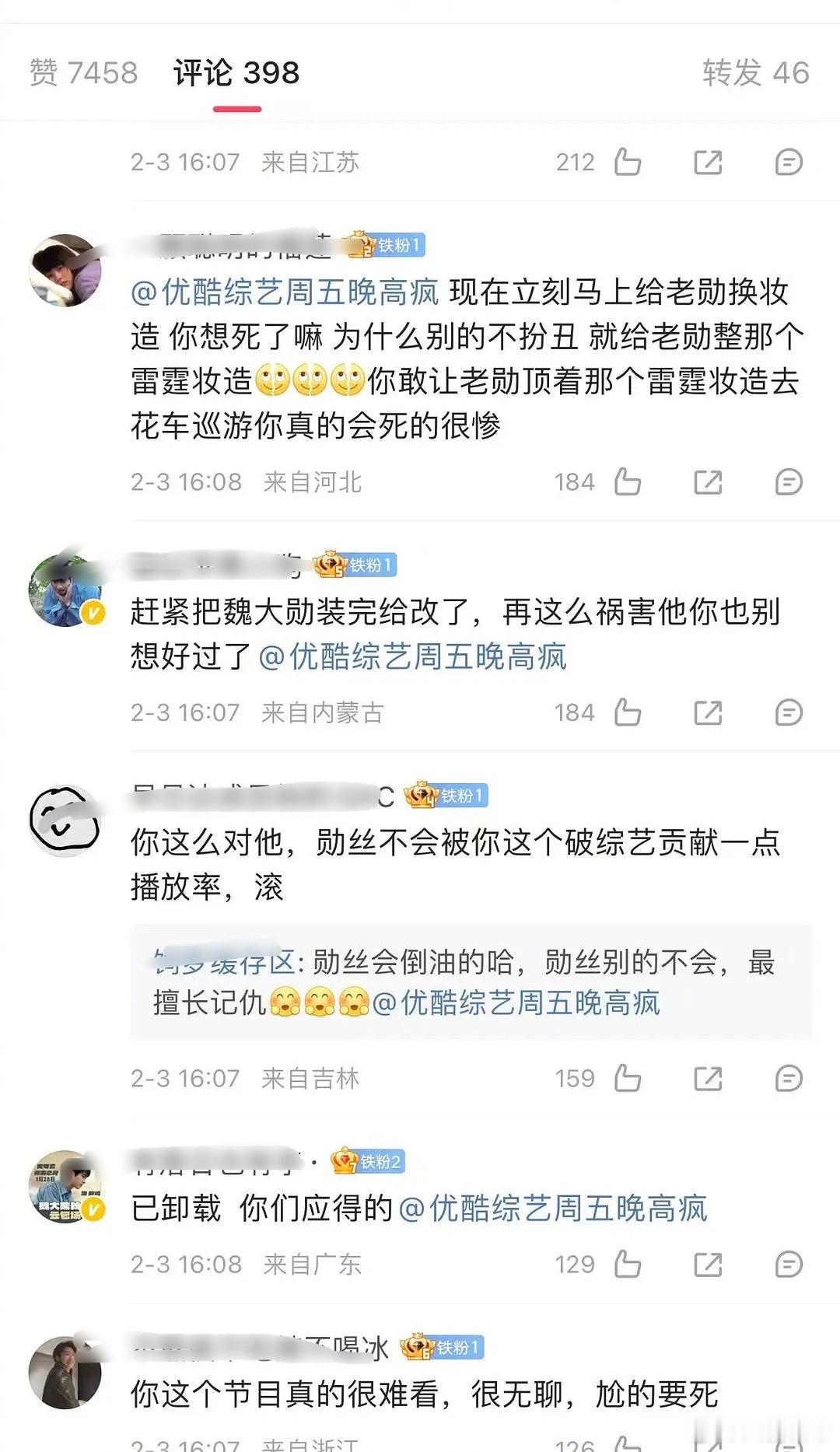 魏大勋粉丝因为妆造问题向综艺《周五晚高疯》维权