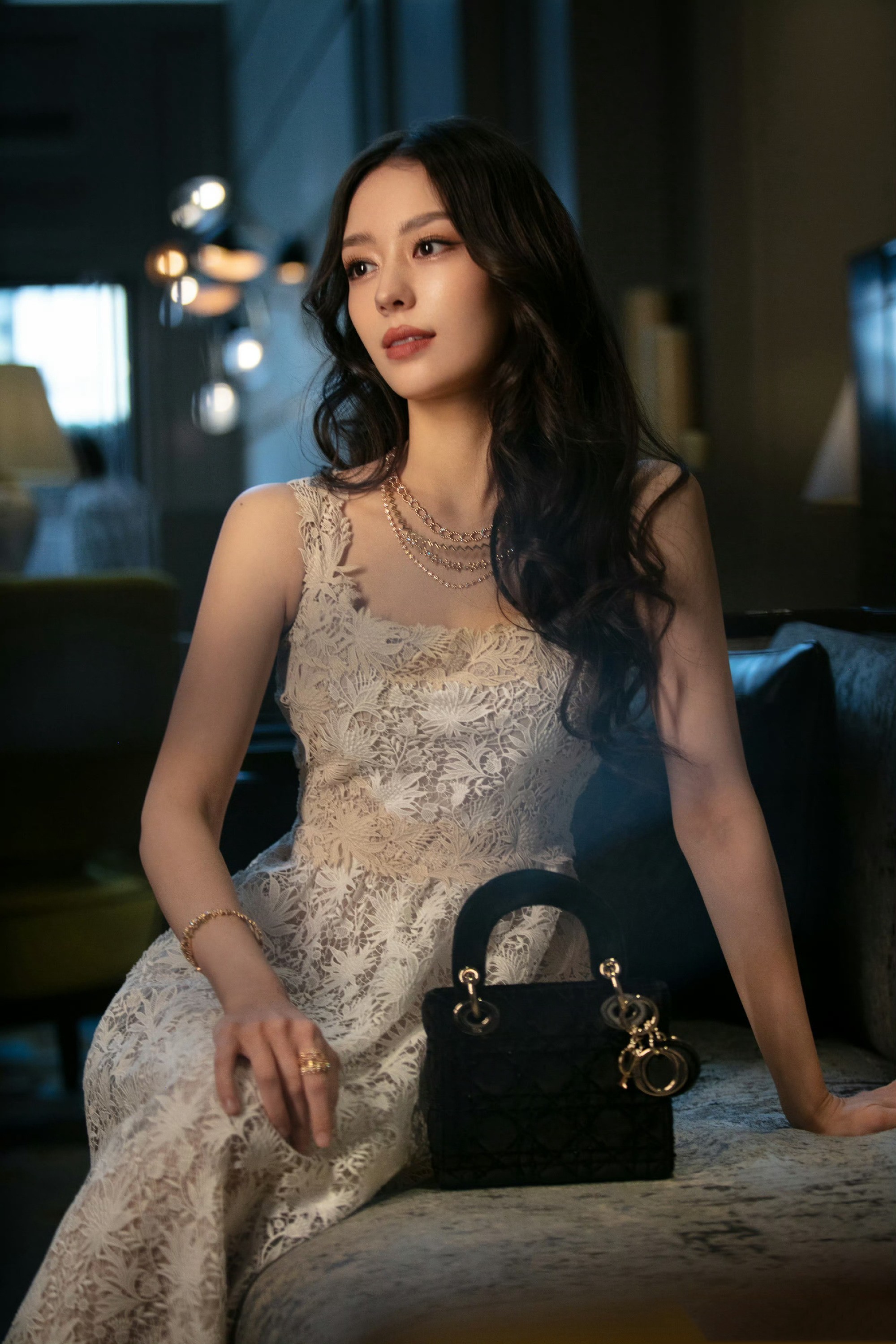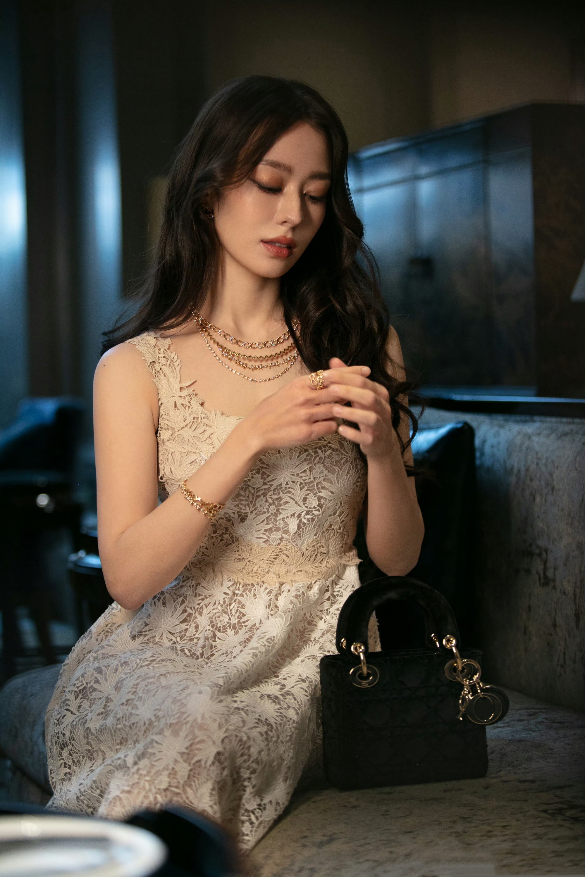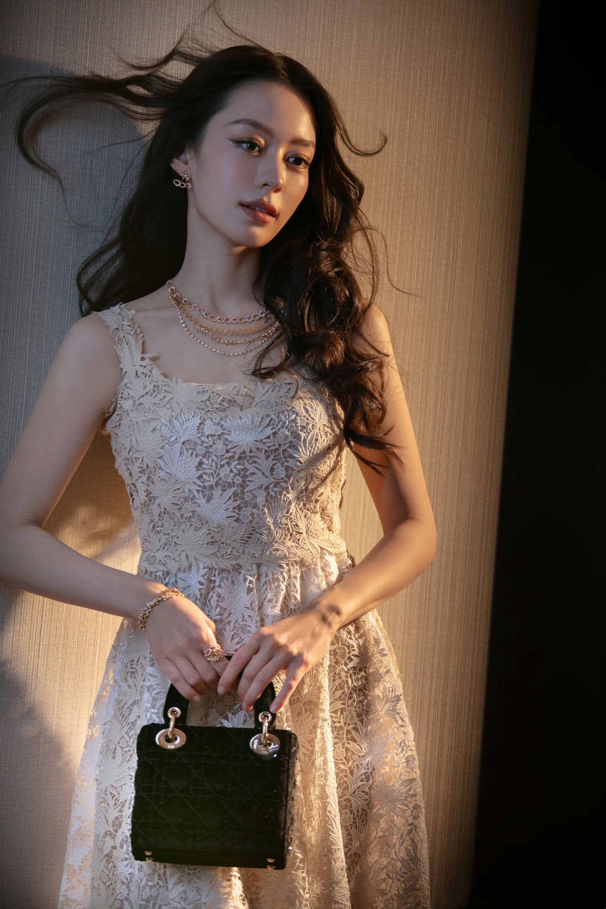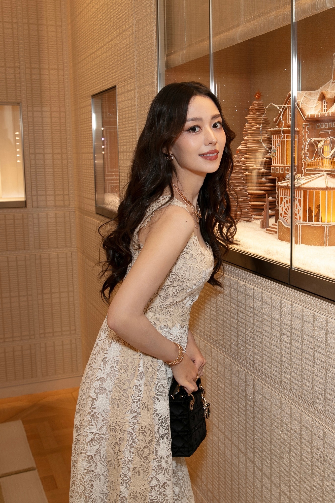 吉娜爱丽丝,卷发蕾丝裙,精致优雅。吉娜爱丽丝