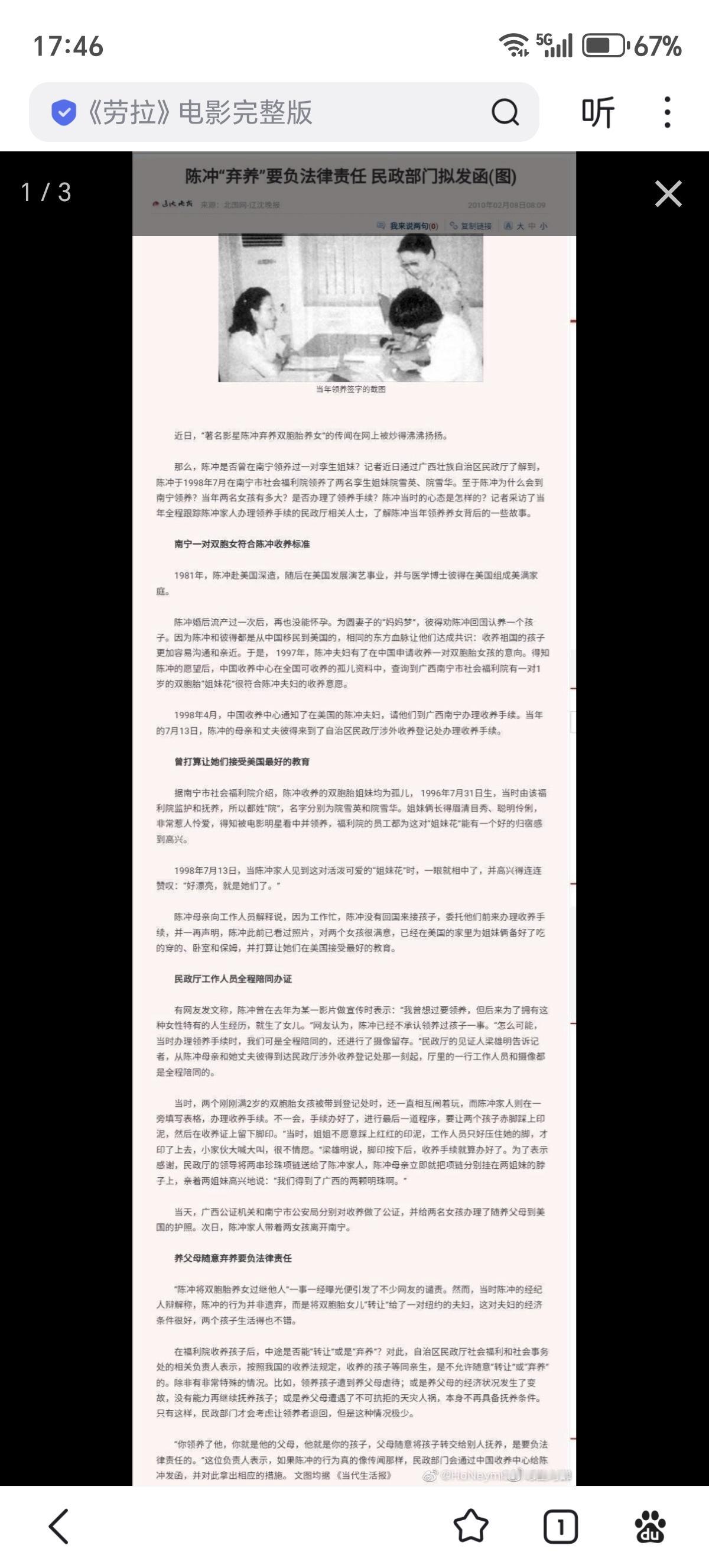 1998年,美籍华裔演员陈冲女士在广西南宁收养了两个双胞胎,但是几年之后把这两个