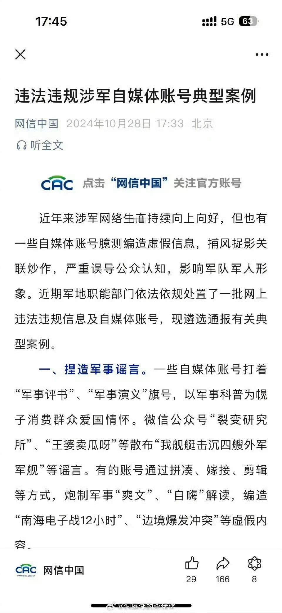 得到消息,某军事博主被禁言6个月,而这只是第一步处罚。