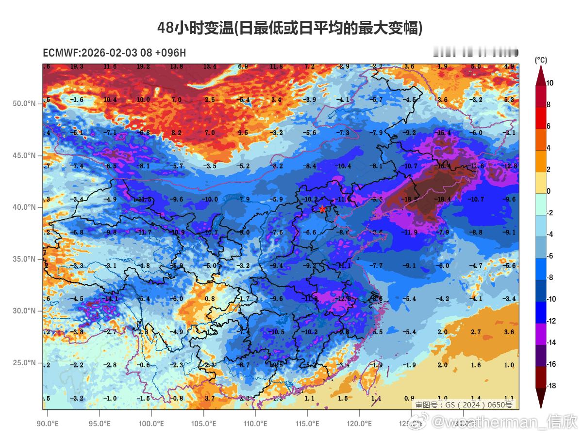 图7-9为不同时段,48小时的平均气温或最低气温的过程最大降温。按照业务规范,有4个以上省区大部地区48小时出现8℃以上降温,且冬季长江中下游地区最低气温低于4℃,就可以触发寒潮预警。因此明天中央气象台发布寒潮预警,基本无悬念。
