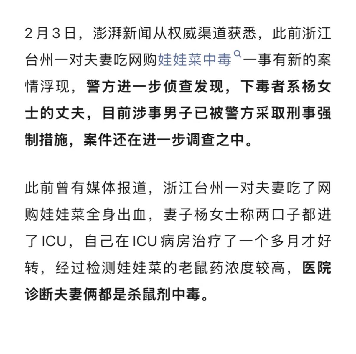 娃娃菜中毒这件事是反转再反转,终于迎来大结局。 本以为是丈夫设计害妻,没想到真相竟然是夫妻合同骗赔,只能说这家小菜店真的实惨。 两人在网店购买娃娃菜之后制造中毒的迹象,然后栽赃给商家和平台,目的自然是为了一个字“钱”。 两口子真的是狠人,为了要钱把自己都弄进医院了,用的还是老鼠药,这是拿命在骗钱。 现在钱没到手不说,两口子直接还进去了,真的是“偷鸡不成蚀把米”。