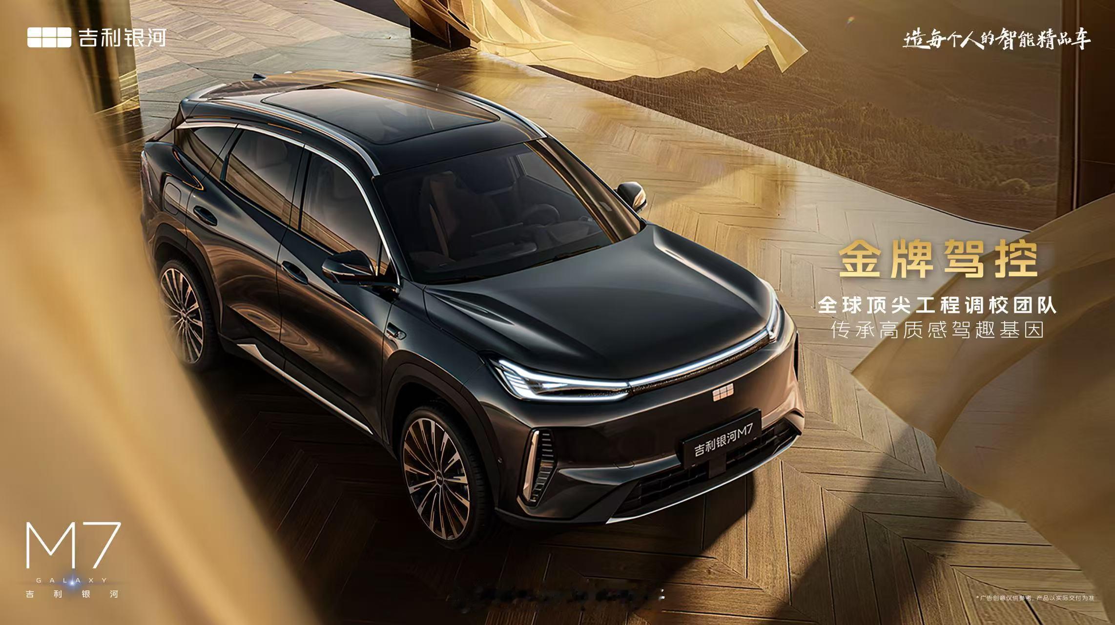 吉利银河M7来了吉利银河M9在2025年相当成功,没想到26年刚进度条才过1/12,吉利直接就亮出银河M7出来,银河M系列的首款中级电混SUV,官图来看,这个设计和审美相当在线。就等价格了,银河给到的诚意一如既往有的,感觉会杀疯中型SUV市场啊吉利银河m7