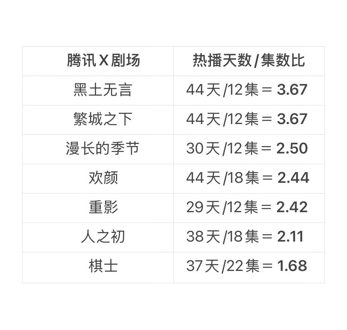 腾讯X剧场热播期统计,《人之初》原本计划两次断更,后来加更收官了,是X剧场正常排播里热播期第二短的!还想咋滴?再说一遍:无主创赎罪云包场,无粉丝百万氪金,期间有同期剧抢走固屏,全集有广收官,断更后连续逆跌,热播期集均破1800万!张若昀人之初
