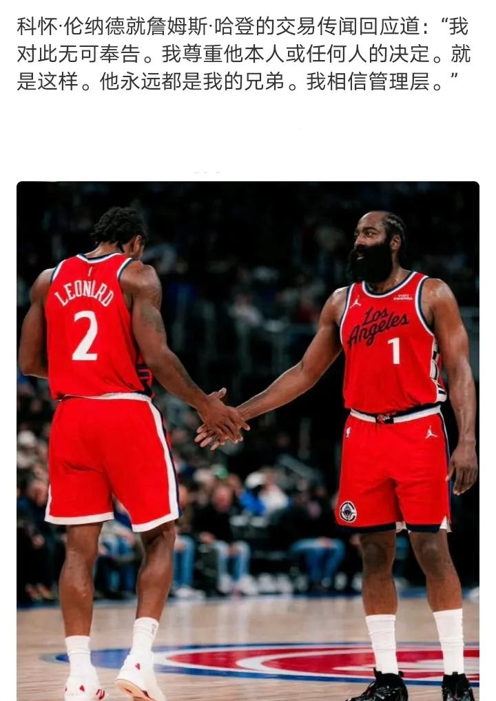 还以为下份合同得卡登 可以有机会降薪辅佐27大哥 原来是想统统清理了,抛开鲈鱼教练能力方面的吐槽,感觉他对这件事也挺不好受。站在伦纳德的角度看,这段时间是最煎熬的,快船好不容易打上来了,中间离不开俩兄弟的互相照顾,越是这种艰难时刻越容易留下一些深刻的印象,小卡肯定舍不得。快船这个赛季还没有摆烂,不会用哈登换赛季报销的球员,而且应该会换具备控卫能力的人,哈登个人也是更倾向于去有争冠实力的队伍。这么看应该大概率只有骑士作为下家,如果交易达不成,哈登也不是非走不可,应该还是有可能会留队吧。