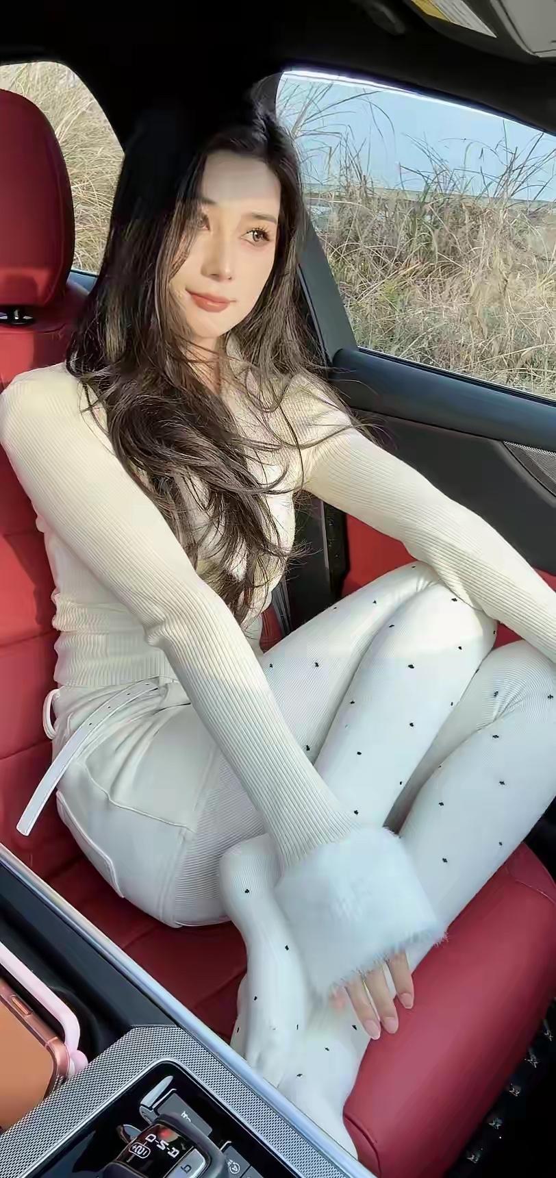 杨颖这珠光丝袜看着怪怪的,像涂了一层油漆……