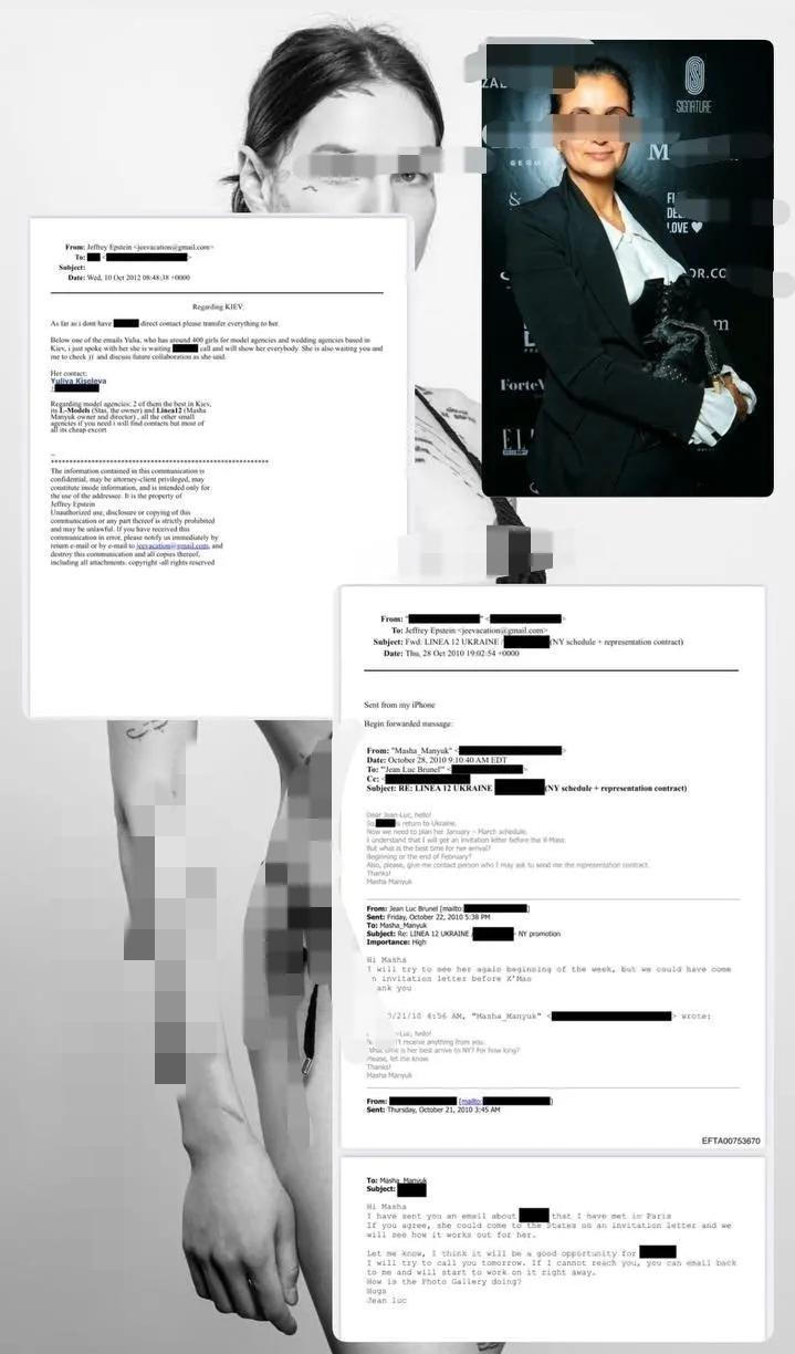 爱泼斯坦案中, 那么多的女孩来自哪里呢? 在爱泼斯坦档案中有一家模特公司多次被提及。 乌克兰模特公司Linea12反复出现在解密档案中,疑点重重。 文件显示这家公司疑似为他输送女性,涉案人数接近400人,甚至还有年仅12岁的莉娜,邮件里详细沟通行程、合同与赴美邀请函,全程伪装成正规模特招募。 爱泼斯坦还和法国经纪人布鲁内尔频繁通信,把这条诱骗链做得隐蔽又严密。 这些女孩签约时大概率被蒙在鼓里,以为是圆梦模特路,没想到踏入深渊。这种打着正规经纪旗号的人口贩卖,比暴力胁迫更让人不寒而栗。 如果是你,遇到海外高薪模特邀约,会轻易相信吗?