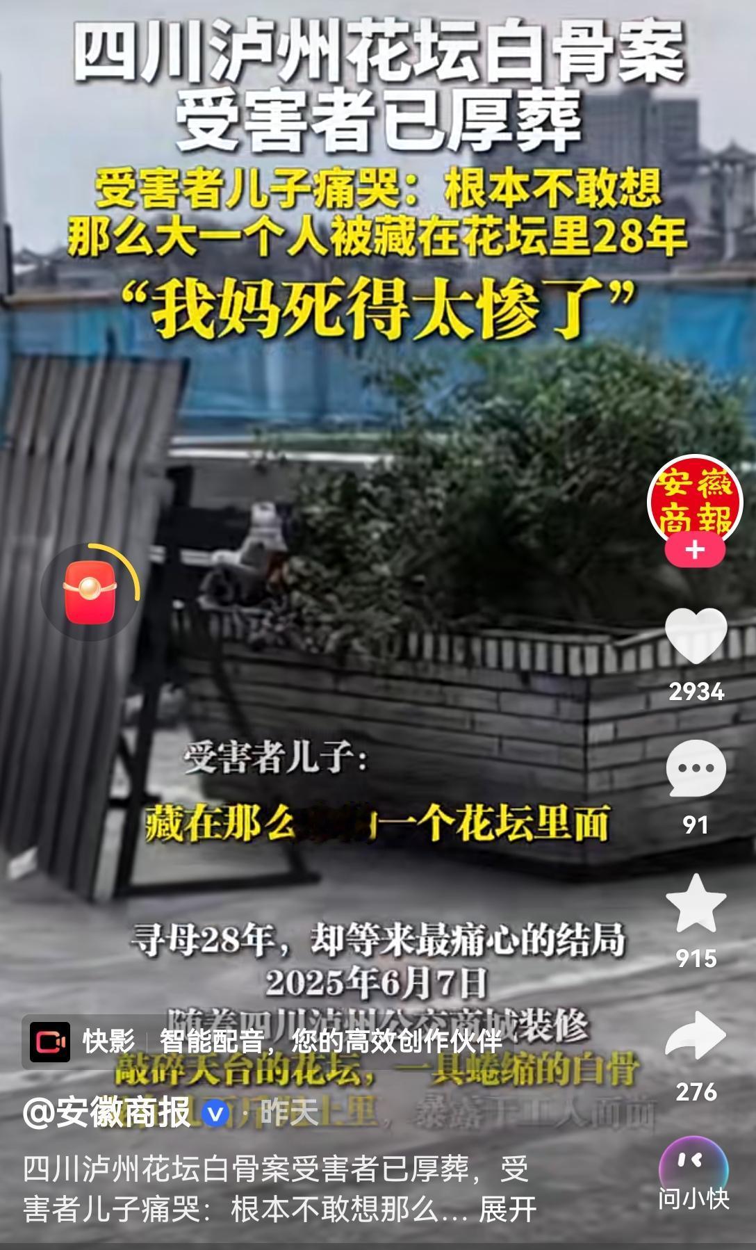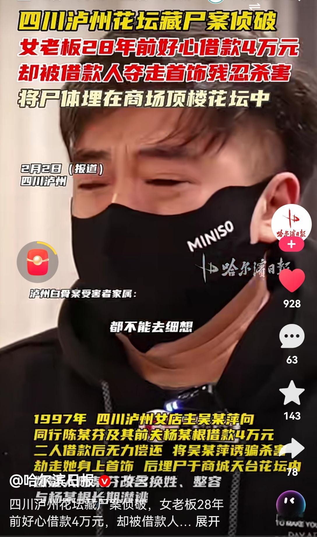 [可怜]泸州花坛藏尸案,受害者一家确实太惨,愤怒完全能够理解[思考]个人一直认为,新加坡的“鞭刑”是一个好的设计,除了轻罪(风化罪等)的处罚外,还可以作为死刑的“加重刑”使用[灵光一闪] [发怒]对于丧心病狂的坏人,让受害人家属抽一顿,再S