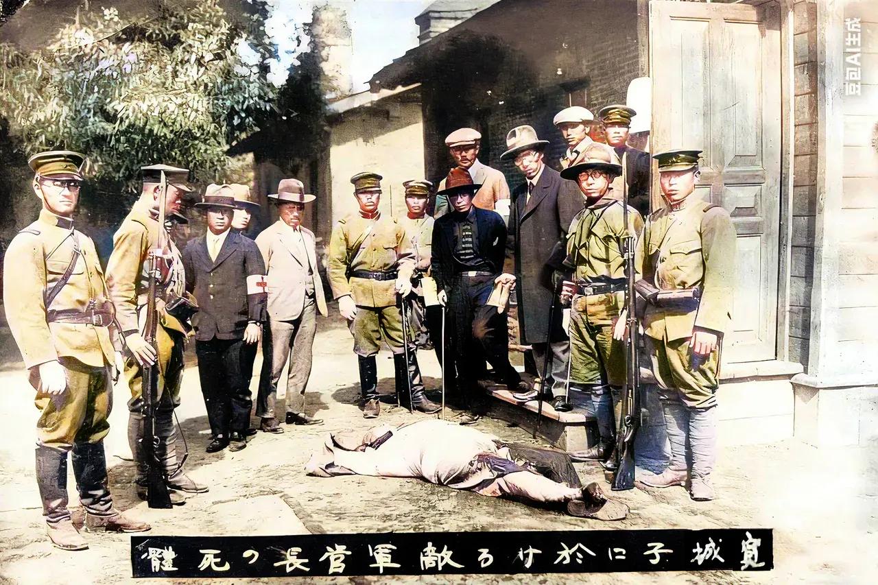 这一事件令人义愤填膺!663团第2营营长傅冠军,在日军要求缴械时,彰显出坚定的民族气节与不屈精神,毅然决然地拒绝缴械。与日军交涉本应是和平沟通,然而日军却毫无信义,突然开枪,导致傅冠军营长当场牺牲(图中是日军站在傅冠军营长的遗体前)。这充分揭露了日军的残暴与阴险,他们全然不将和平、人道放在心上。傅冠军营长为了国家和尊严捐躯,他是当之无愧的英雄,值得我们永远缅怀。他的事迹时刻警醒着我们,不能忘却那段屈辱历史,要奋发图强,避免类似的悲剧再度发生。