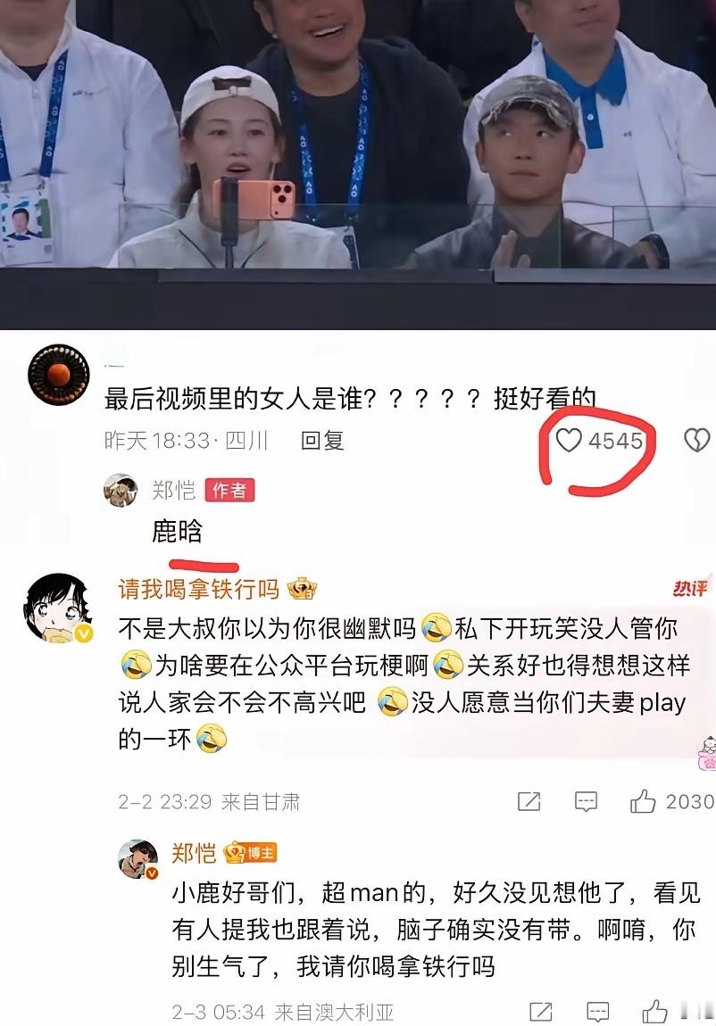 总感觉郑恺对苗苗有点“嫌弃”就看他这个澳网volg,几十分钟视频,苗苗露面一秒钟然后网友夸苗苗好看(高赞),正常逻辑不该是点赞或者回个秀恩爱的回复吗结果他倒好,回了个“鹿晗”,一下子把那种秀恩爱的气氛破坏了。看得出他对鹿晗应该没恶意,就是单纯不想在自己评论区提苗苗,想“玩梗”转移话题。虽说他俩们两口子现在形影不离,资源也高度重合,但从各种路人偶遇视角看,郑恺的表情好像真不咋高兴。以前觉得他们两口子挺恩爱的,但现在种种迹象,真的感觉这对夫妻很别扭,氛围怪怪的。