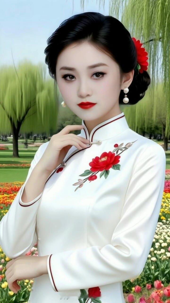 古典美人,红妆映绿意,花间一曲情