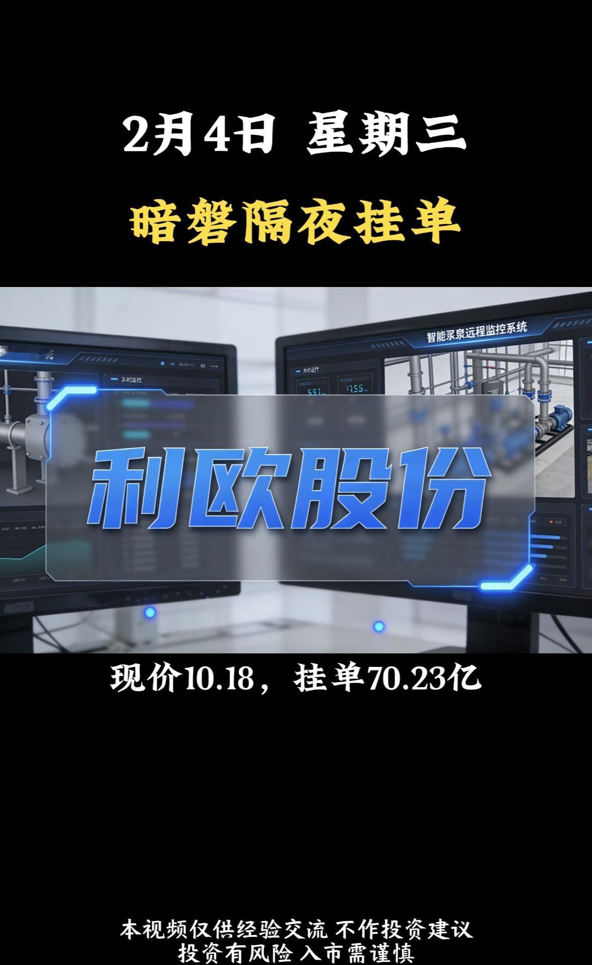 2月4日利欧股份暗盘隔夜挂单,现价10.18,挂单70.23亿 岩山科技暗盘挂单引关注,投资需谨慎交流经验。
