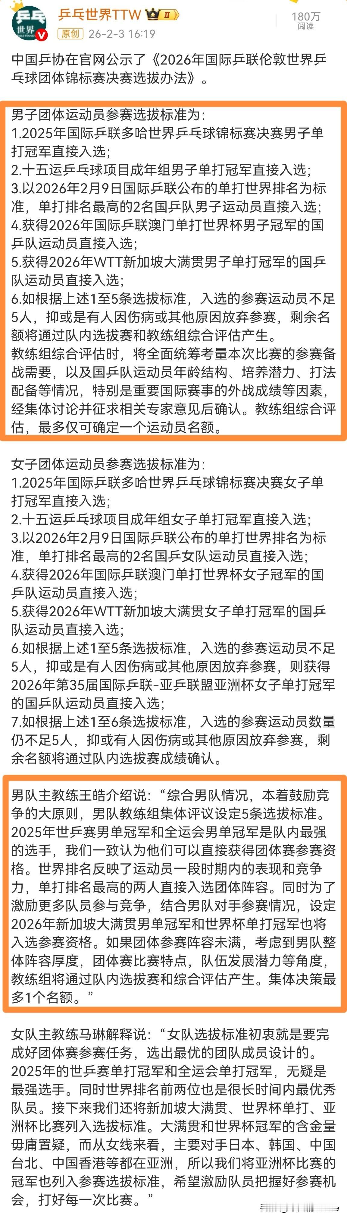 樊振东虽然在德国打球,但他又迎来了两个好消息,我们一起来看一看吧。 2月3日,樊振东官宣新代言,他成为了适乐肤品牌洁面类代言人,恭喜东东。 同日,乒协公示《伦敦世乒赛决赛选举办法》,其中有一条选拔标准是“十五运乒乓球项目成年组男子单打冠军直接入选”,这就意味着东东有资格参加伦敦世乒赛。 男队主教练王皓介绍说:“2025年世乒赛男单冠军和全运会男单冠军是队内的最强选手。” 王皓提到的两位单打冠军就是王楚钦和樊振东,这也从侧面证实了两人的实力水平。 目前,国乒队伍青黄不接,尤其是男队,年轻运动员都还不够成熟,世界大赛经验较少。 如果樊振东能顺利回归国际赛场,这将是国乒一大助力,大家觉得呢?