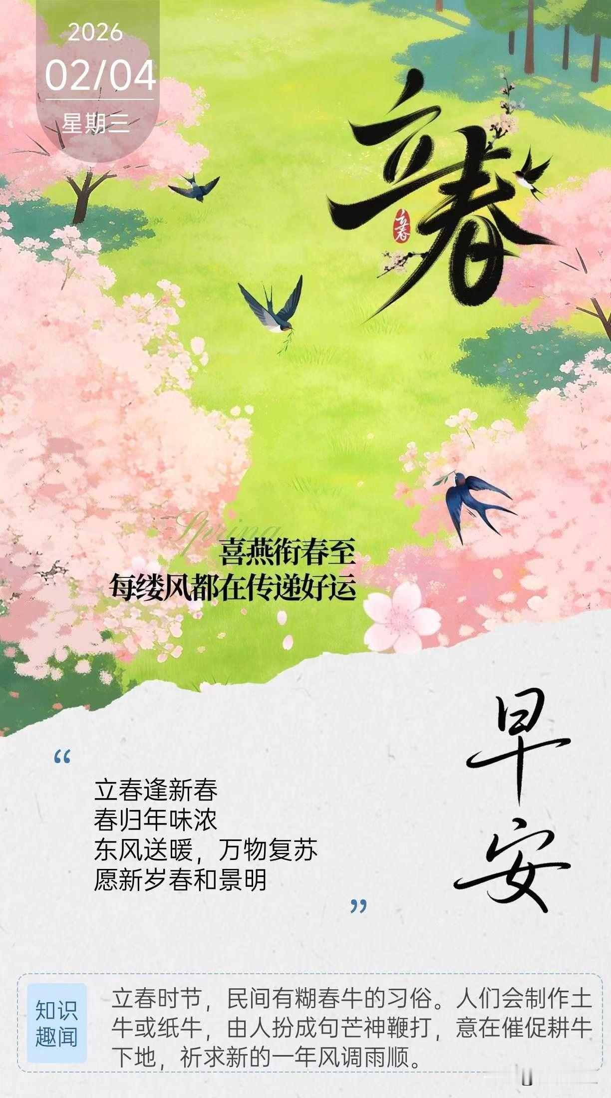 立春逢新春 春归年味浓 东风送暖,万物复苏 愿新岁春和景明[太阳]