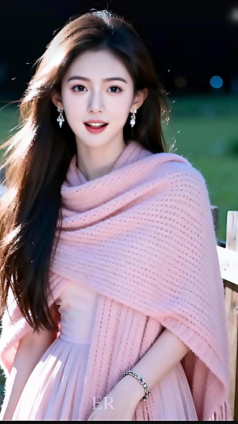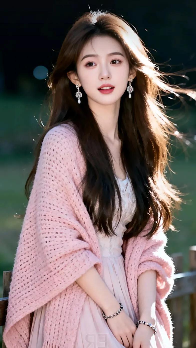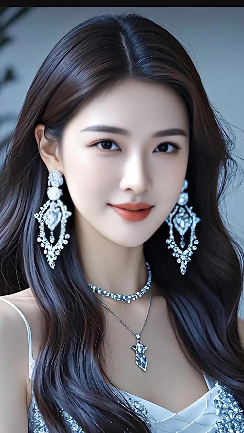 优雅气质,蓝色格纹吊带裙,甜美笑容,时尚项链,完美搭配美景佳人 清纯一笑倾红颜