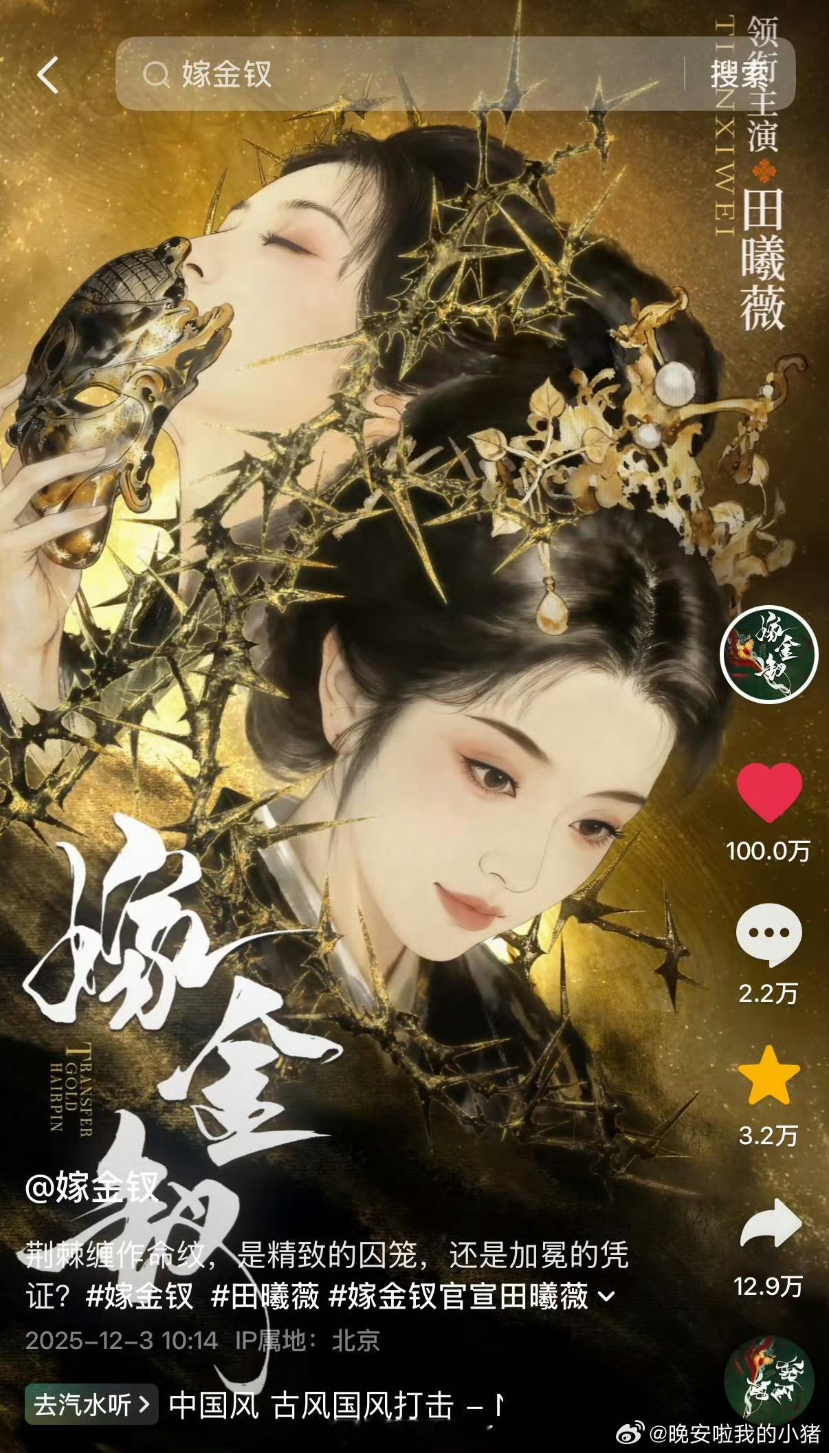 田曦薇《嫁金钗》单人物料达成百万赞👍